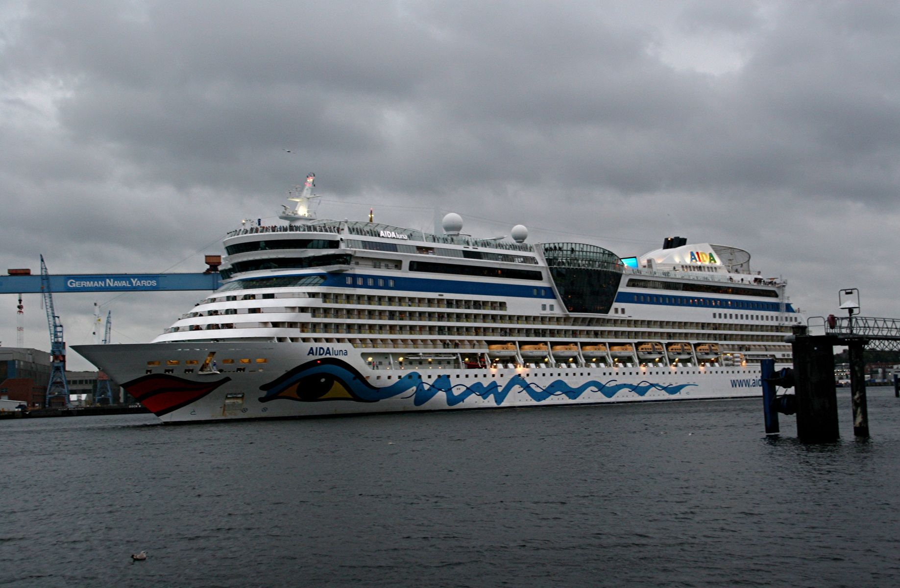 hier gibt es jetzt wolkige Bilder vom Auslaufmanöver der AIDAprima auf der "Kieler Förde" am 16.10.2021