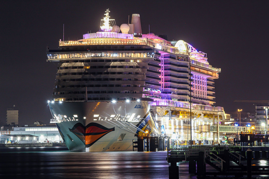 die AIDAcosma im nächtlichen Lichterglanz am Ostseekai,das ist schon was für das Auge