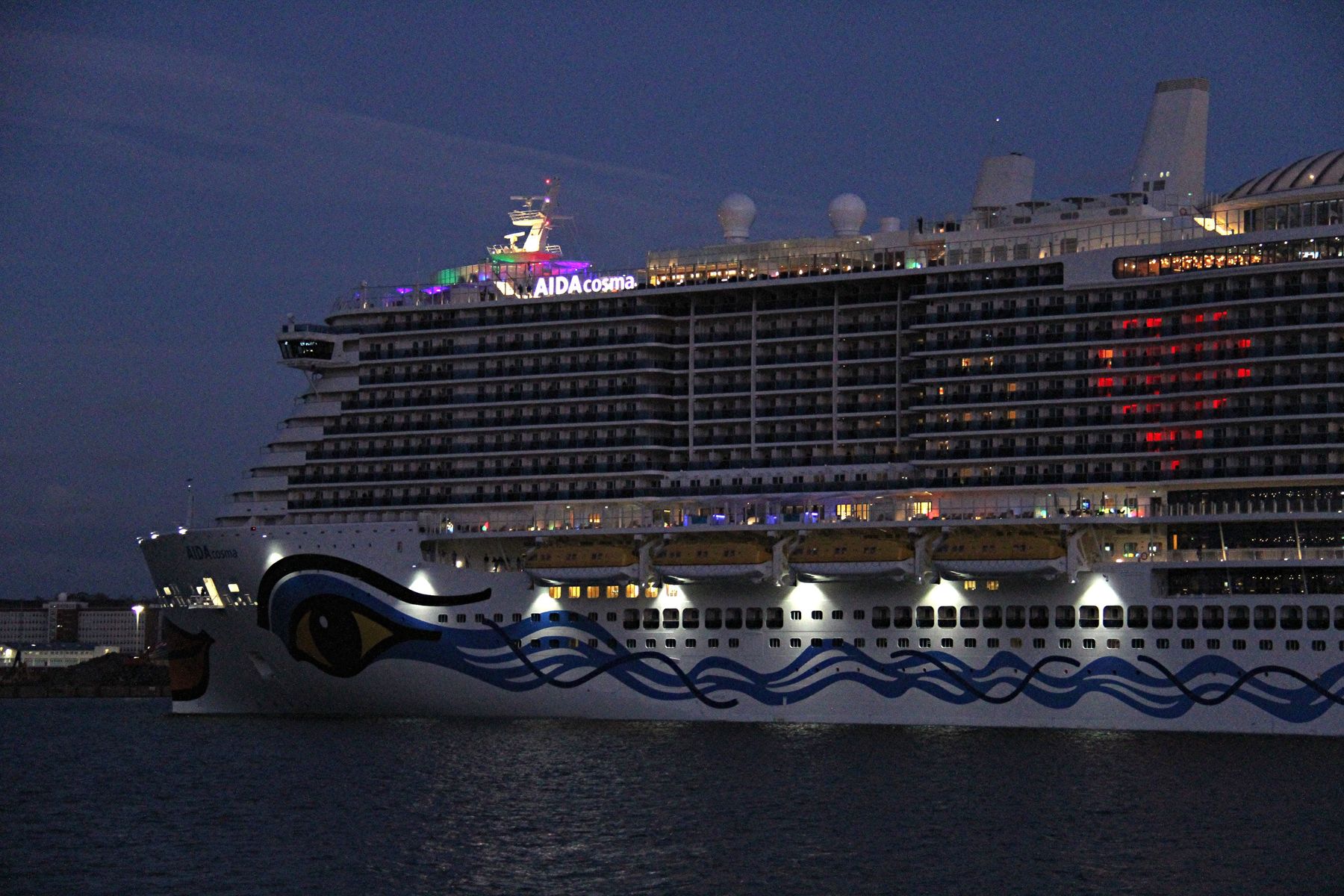 anschließend zu den Bildern in den Beiträgen Nr.1863 und Nr.1864 gibt es jetzt noch Bilder von der AIDAcosma während ihrer "Revierfahrt" auf der dunklen "Kieler Förde" am 23.02.2022