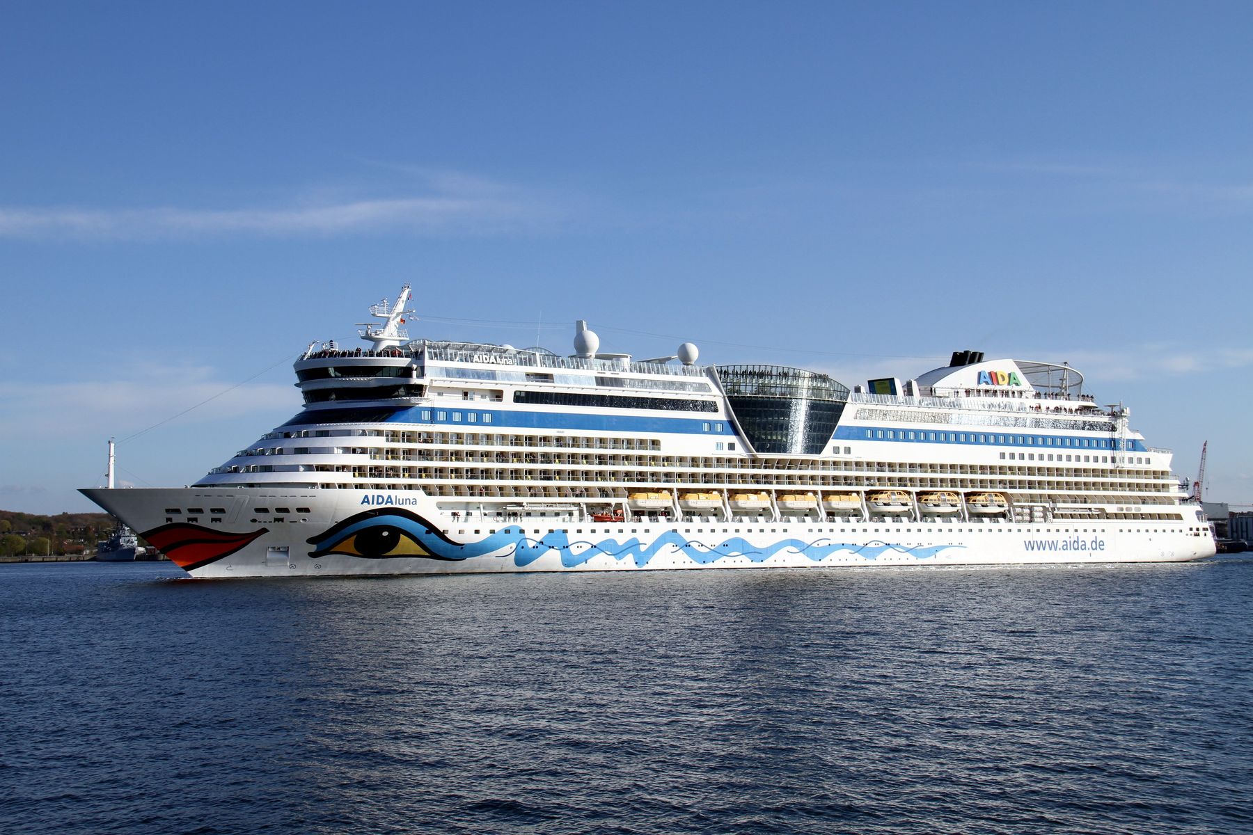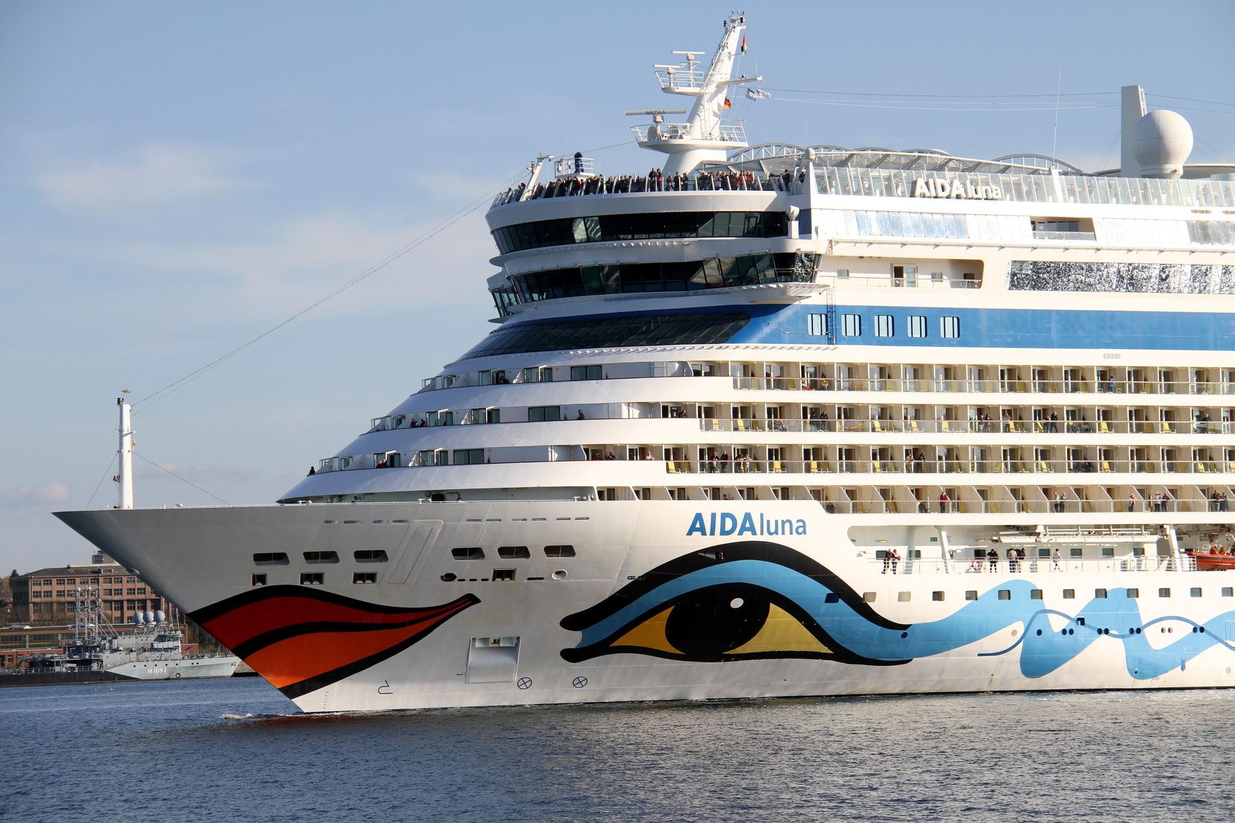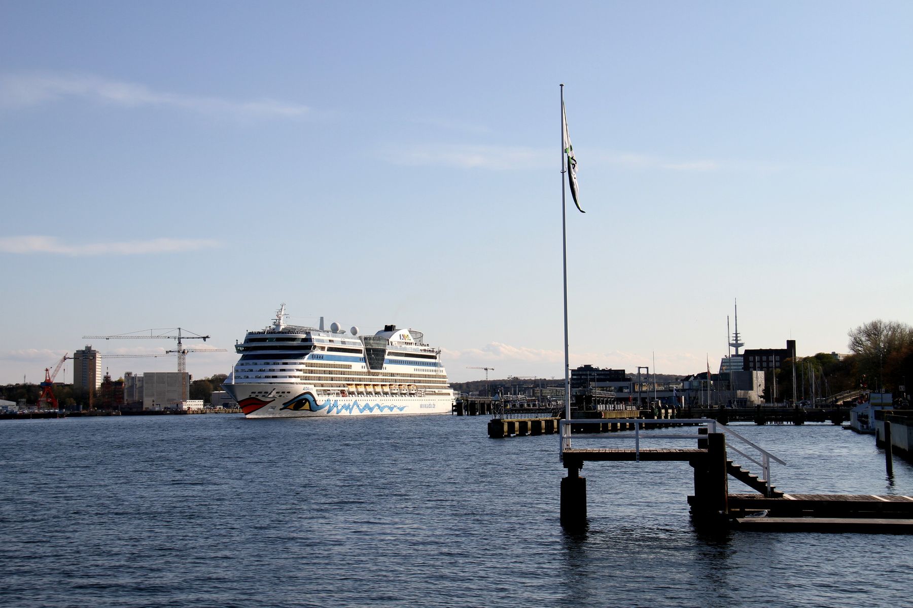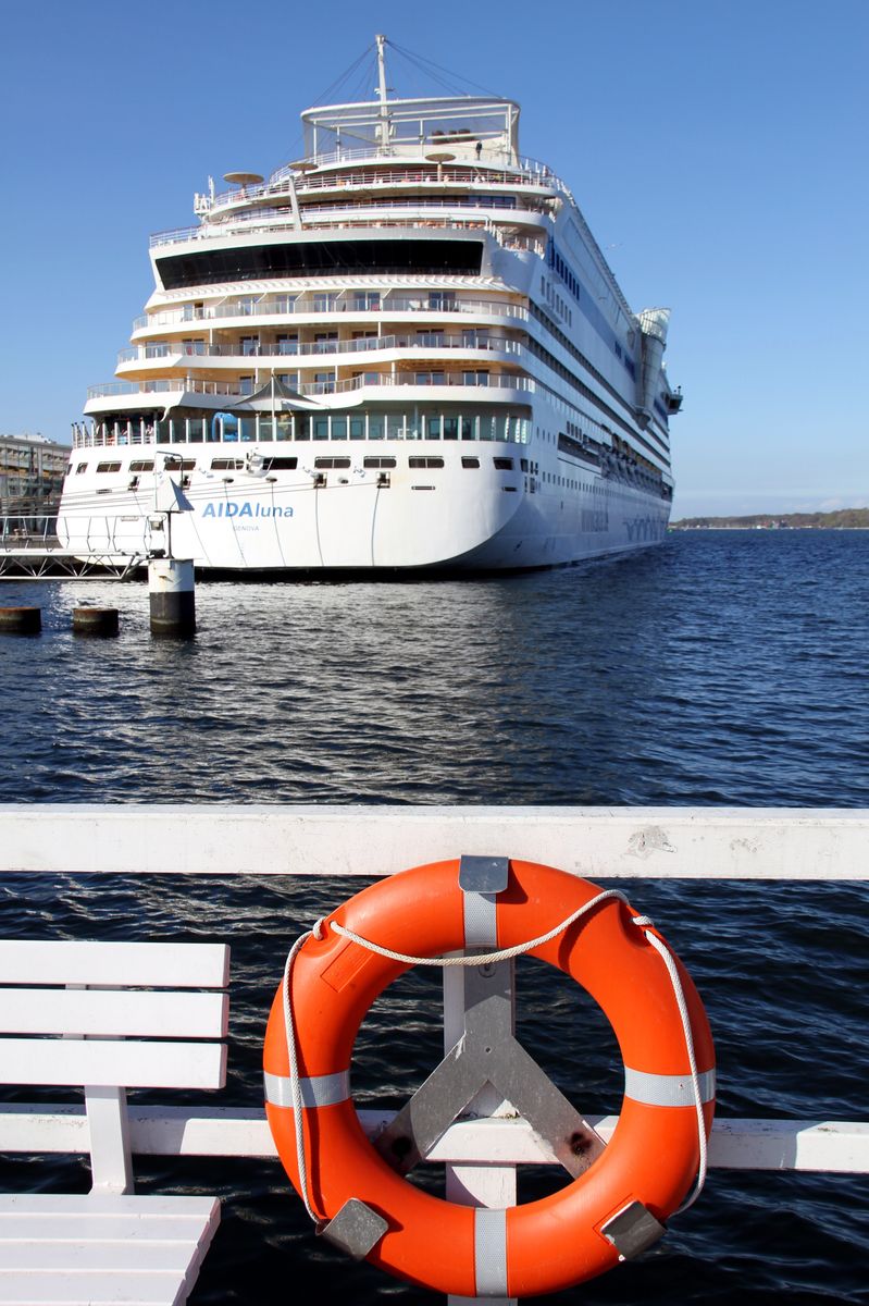 Später gibt es auch noch Bilder vom Auslaufmanöver der AIDAluna auf der "Kieler Förde" unter einem azurbauen Himmel