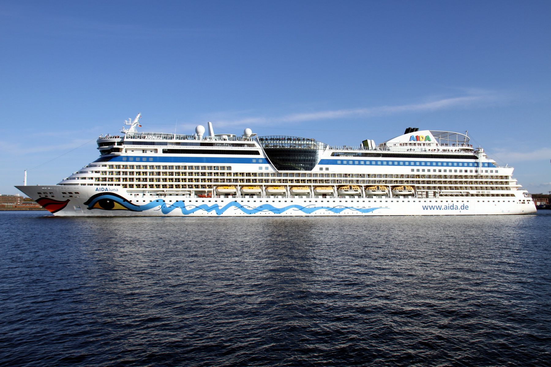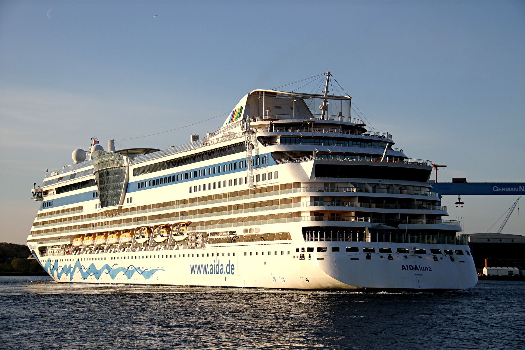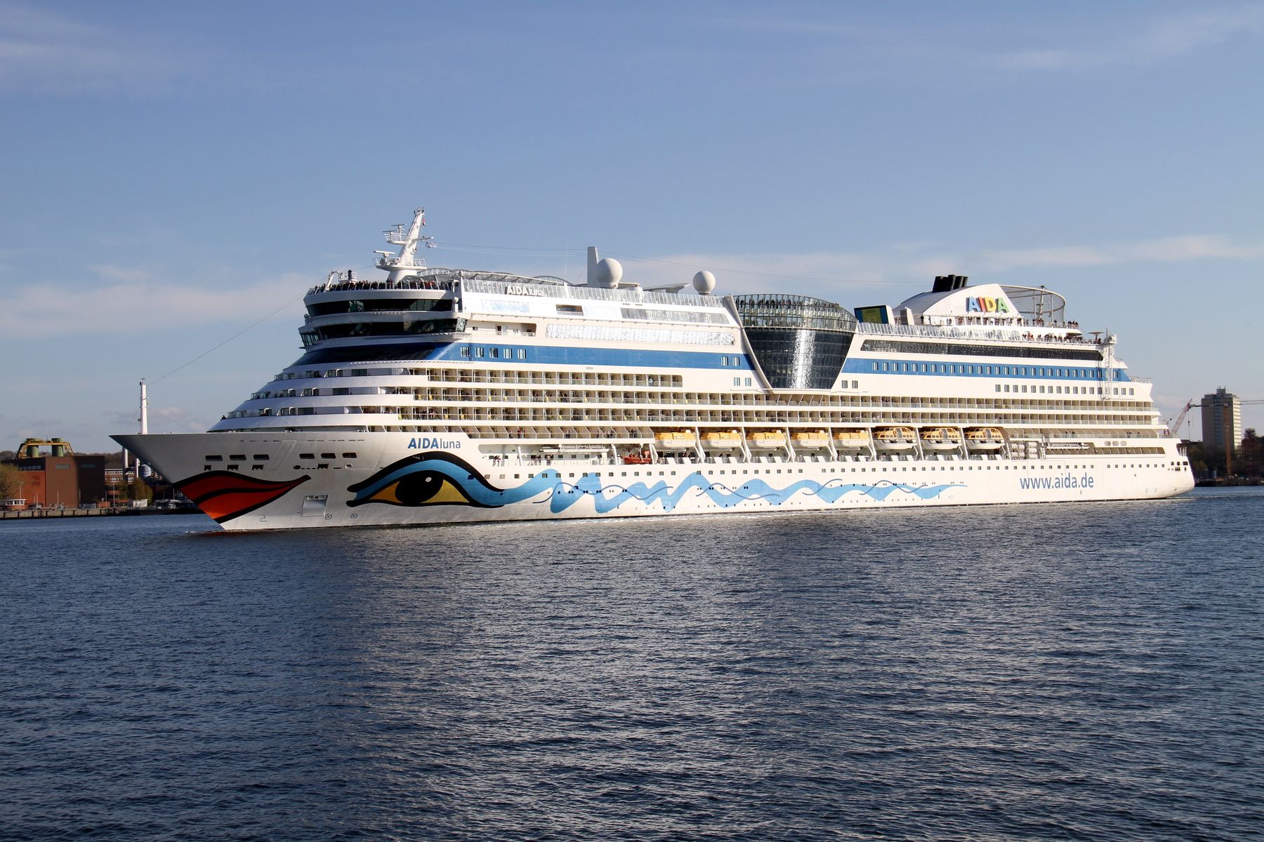 Später gibt es auch noch Bilder vom Auslaufmanöver der AIDAluna auf der "Kieler Förde" unter einem azurbauen Himmel