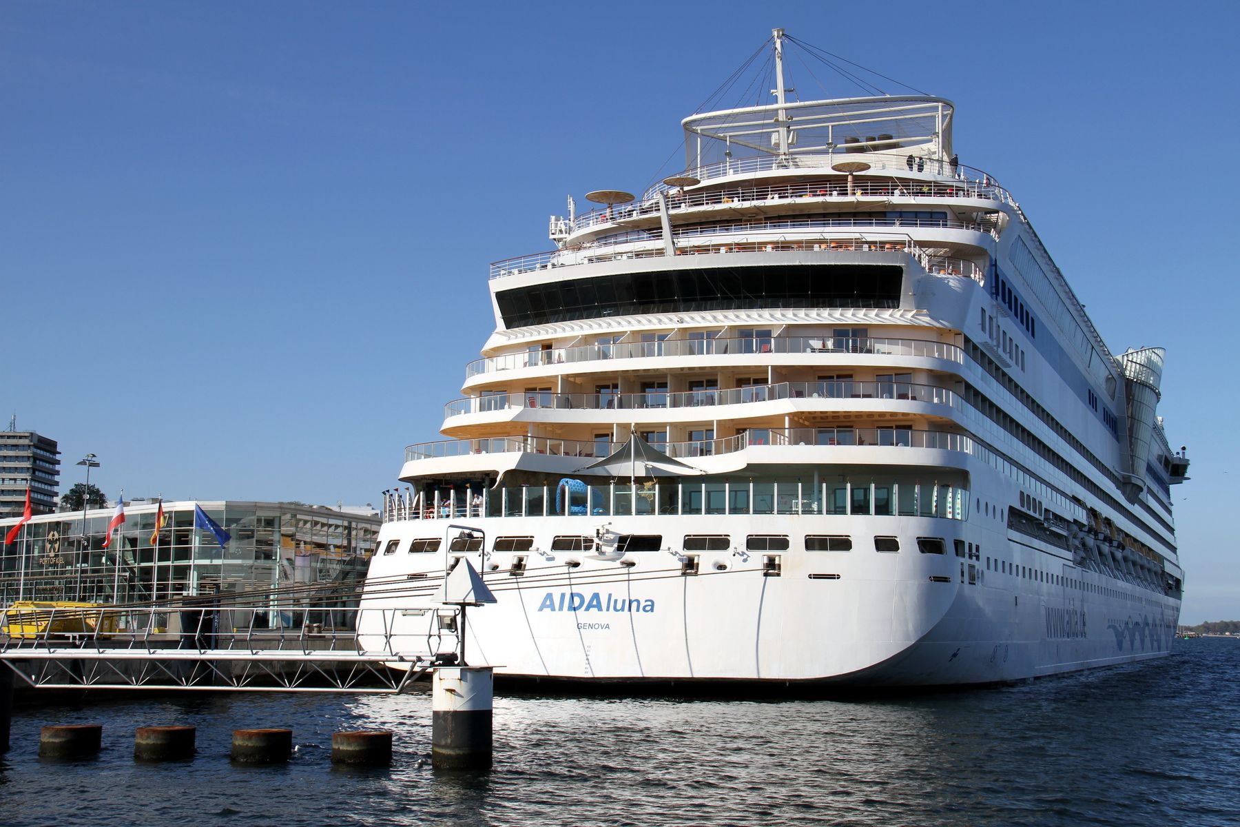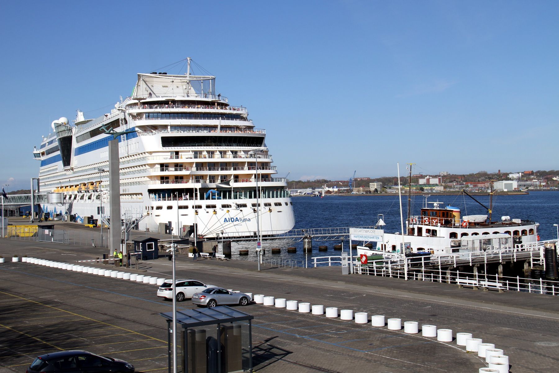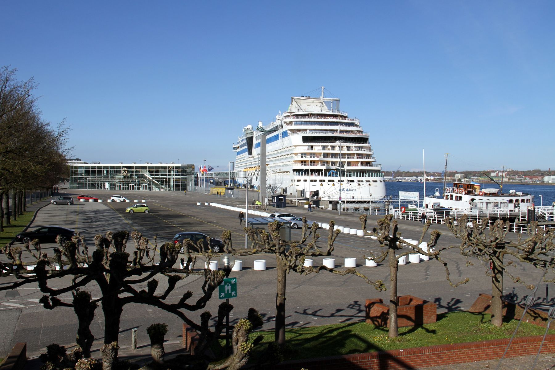 anschließend zu den Bildern im Beitrag Nr.1882 gibt es jetzt noch Bilder von der AIDAluna während ihrer Drehung auf dem "Teller" vor der Flaniermeile "Kiellinie" unter einem azurblauen Himmel