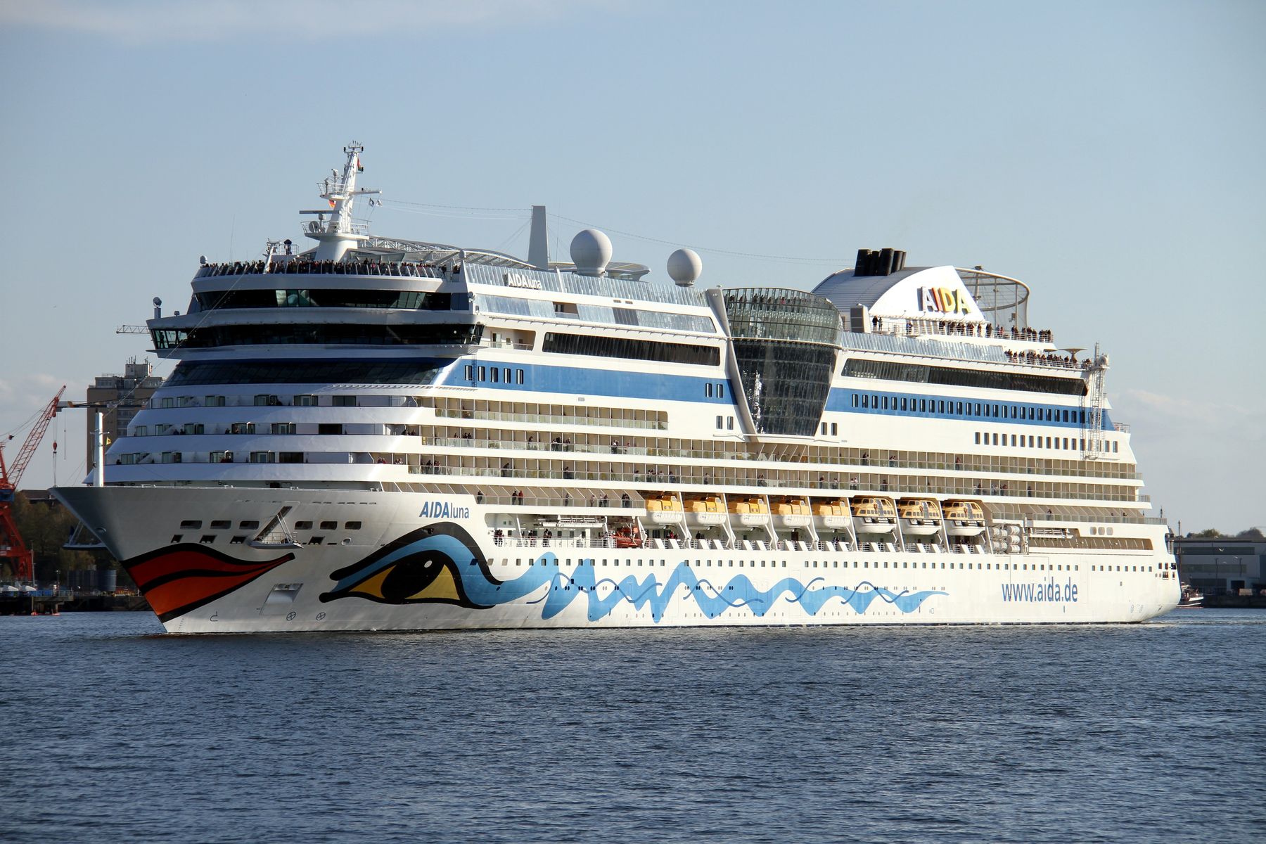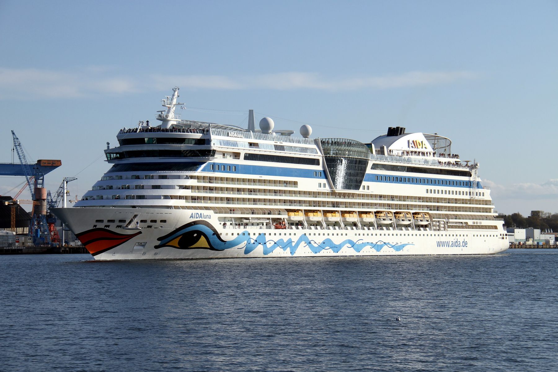 passend zu den Bildern der AIDAluna vom Einlaufmanöver und am Ostseekai unter einem azurblauen Himmel , gibt es jetzt noch Bilder vom Auslaufmanöver der AIDAluna am 25.04.2022