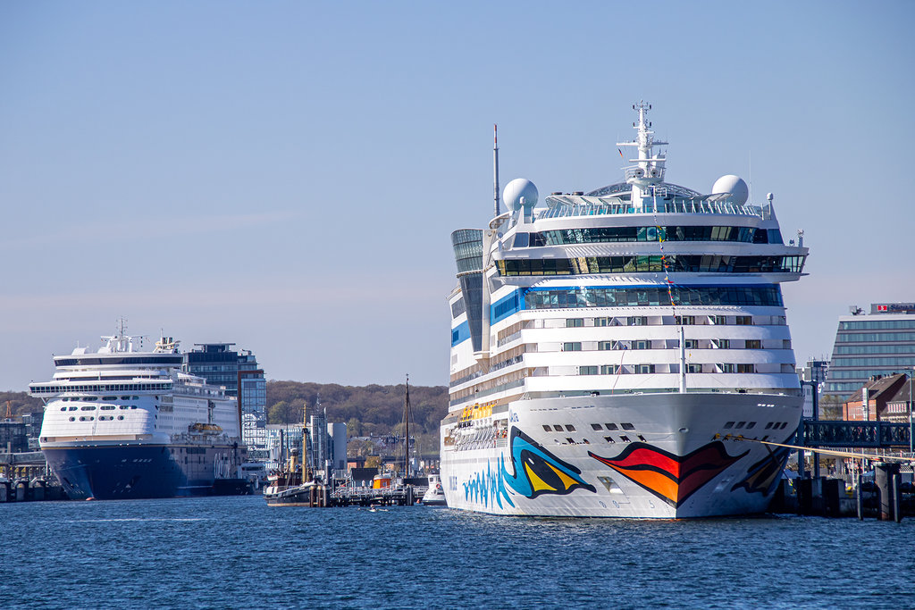 Später gibt es auch noch Bilder vom Auslaufmanöver der AIDAluna auf der "Kieler Förde" unter einem azurbauen Himmel