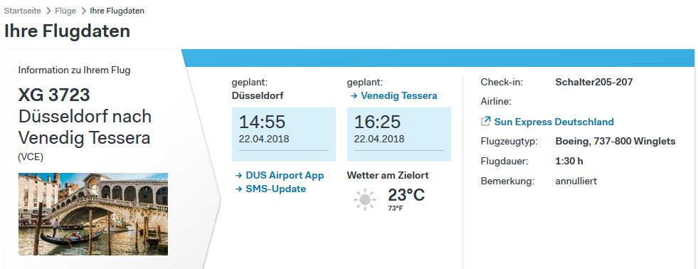 Planmäßig 6:55 Uhr und 14:55 Uhr.Ich finde weder auf der Abflugseite von DUS noch von CLG und auch nicht auf der Ankunftseite von Venedig Airport einen Hinweis, dass eine der Maschinen schon gestartet, geschweige denn gelandet wäre.