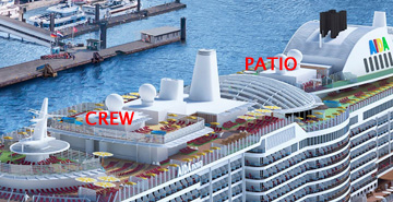 Für mich wäre das Crew-Sonnendeck in der Lage, mit der Ausstattung und der Größe, gerade in Relation zum FKK-Deck und auch zum Patio-Deck einfach unlogisch und nicht wirklich sinnvoll :)