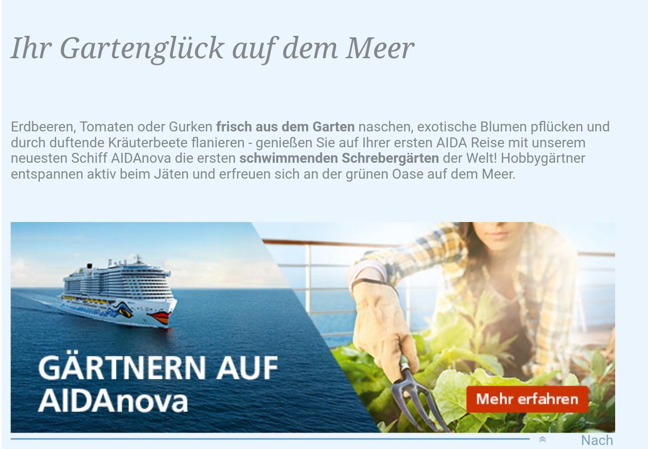 Schon gesehen? Auf AidaNova kann man "Gärtner spielen". (Newsletter von heute/gestern?)