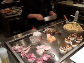 Mit einem echten teppanjaki Grill hatte das wenig zu tun. Wir haben das schnon in Düsseldorf gemacht. Die Zutaten sind sehr erlesen (erlesene Fische Meeresfrüchte und so was wie Kobe Rind) es ist sehr lecker, gesund und eben auch Wasser besonderes (wird am Tisch zubereitet) und dadurch ist es sehr hochpreisig.
