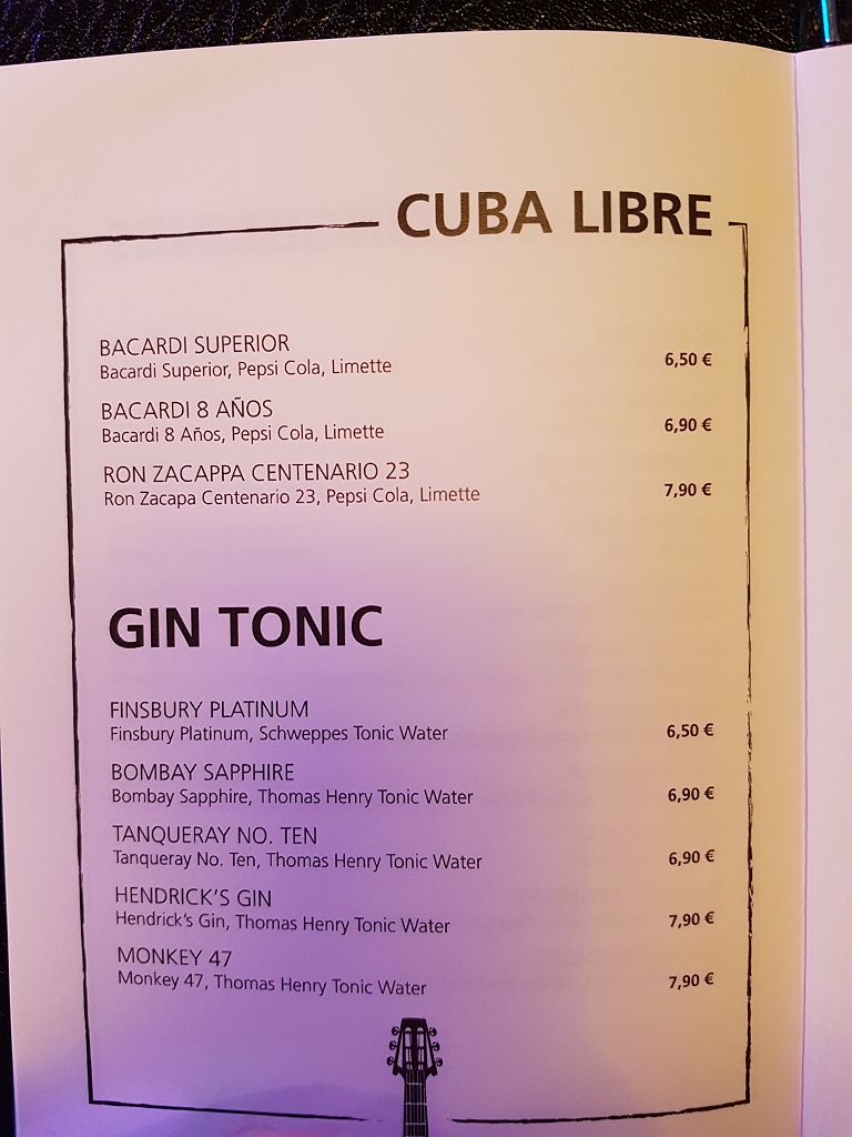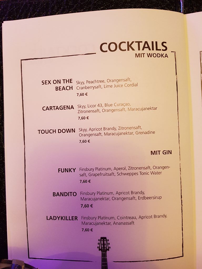 French Kiss, Best Burger & Sea, Casa Nova, Asia Grill, Brauhaus, Ocean`s, Churrascaria, Rossini und Sushi House. Lediglich zur Essenszeit 17:30 wäre Time Machine reservierbar (hatte ich aber schon lange vorher festgemacht).