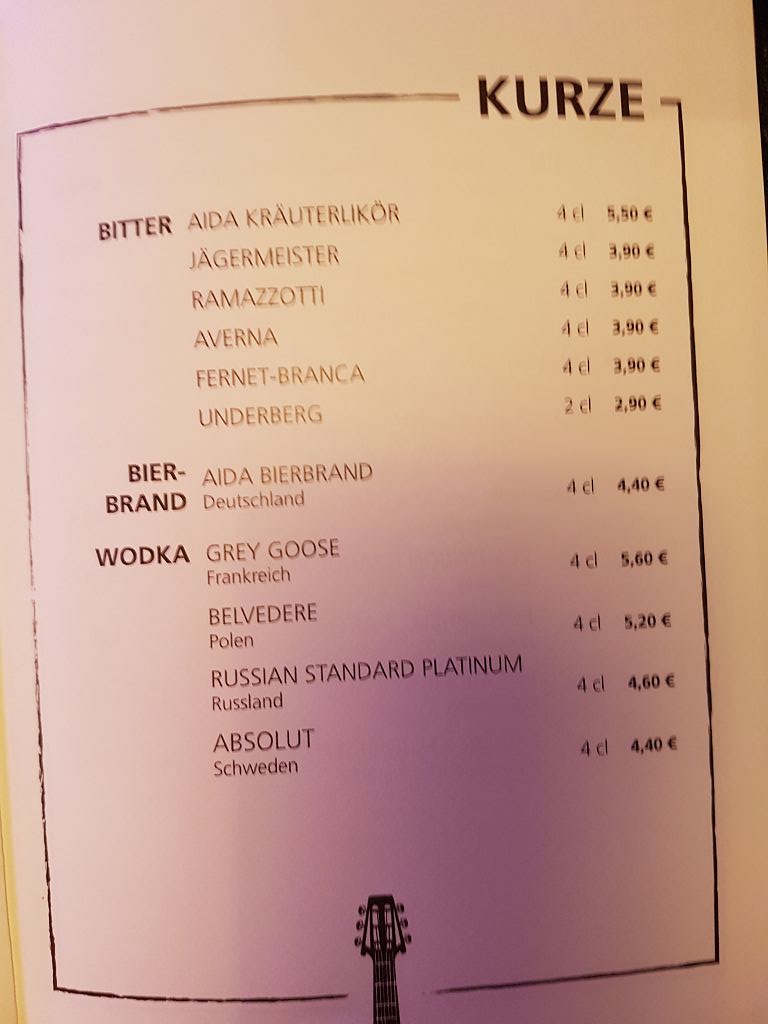 ich habe zwar nicht gezielt Speisekarten fotografiert, allerdings ist mir im Laufschritt einiges untergekommen.