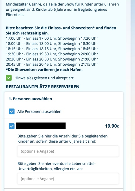 Mindestalter 6 Jahre, da Teile der Show für Kinder unter 6 Jahren ungeeignet sind, Kinder ab 6 Jahre nur in Begleitung eines Elternteils.