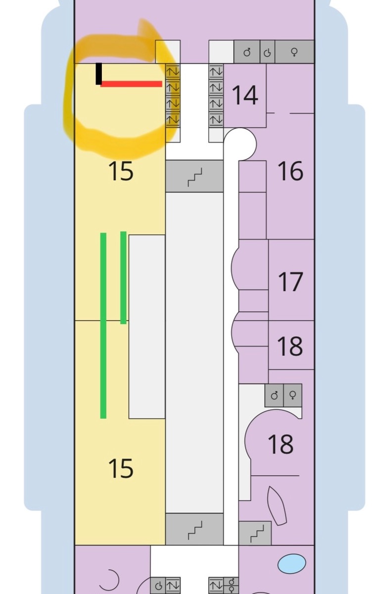 Ob sie diese wohl jetzt so umgestalten wie auf der Cosma mit dem Verkaufstresen zum Theatrium hin?
