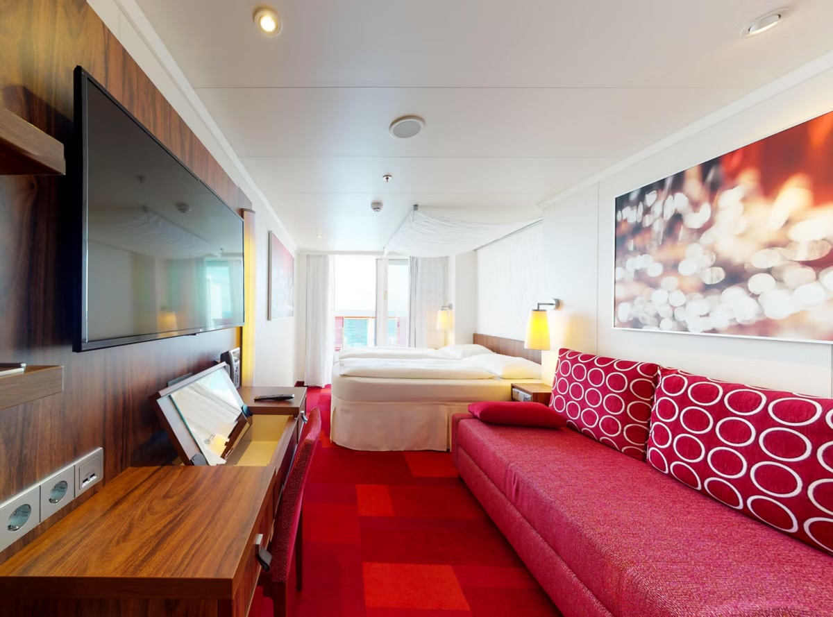 Letztes Jahr Veranda Komfort Kabine auf Deck 16 (backbord) in den Farben beige / braun / türkis. Dieses Jahr Bugkabine auf Deck 11 in den Farben Beige und Rot. Die Farben sind für mich zweitrangig. Ich kann man aber auch schwer in jemanden hineinversetzen, der auf eine gewisse Farbe "allergisch" reagiert.
