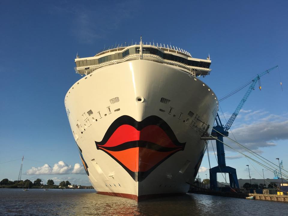 Wir waren auf der Taufe, das Schiff ist schon sehr groß! Und trotzdem nicht so ein Klotz, der aussieht wie gestapelte Container, wie viele große Kreuzfahrtschiffe. Das Schiff ist vom Design sehr ansprechend, passt in die Linie.