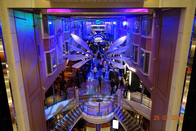 Zentraler Punkt ist eine Promenade mit Geschäften und verschiedenen Bars/Restaurant inmitten des Schiffs.