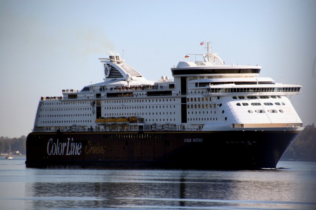 Hier mal ein paar Fotos vom Auslaufen der "Color Fantasy" am 12. August 2018, das ich vom Strand des Ostseebads Laboe beobachtet habe. Mit ihrer "Schwester", der baugleichen "Color Magic" bin ich bereits zweimal von Kiel nach Oslo gefahren. Diese beiden Norwegenfähren sind eigentlich keine Fähren mehr im klassischen Sinne. Es sind vielmehr "Kreuzfahrtfähren". Ich war damals so überrascht, welch tolles Ambiente man hier findet.