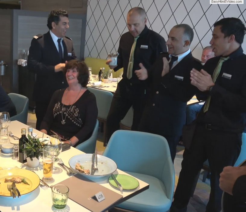 Dann muss ich das Gebutstagsständchen des Personls auf der 'Mein Schiff 5' für unsere Freundin wohl geträumt haben. Allerdings war es nicht morgens (da waren wir auf einem Ausflug) sondern abends im Bedienrestaurant.
