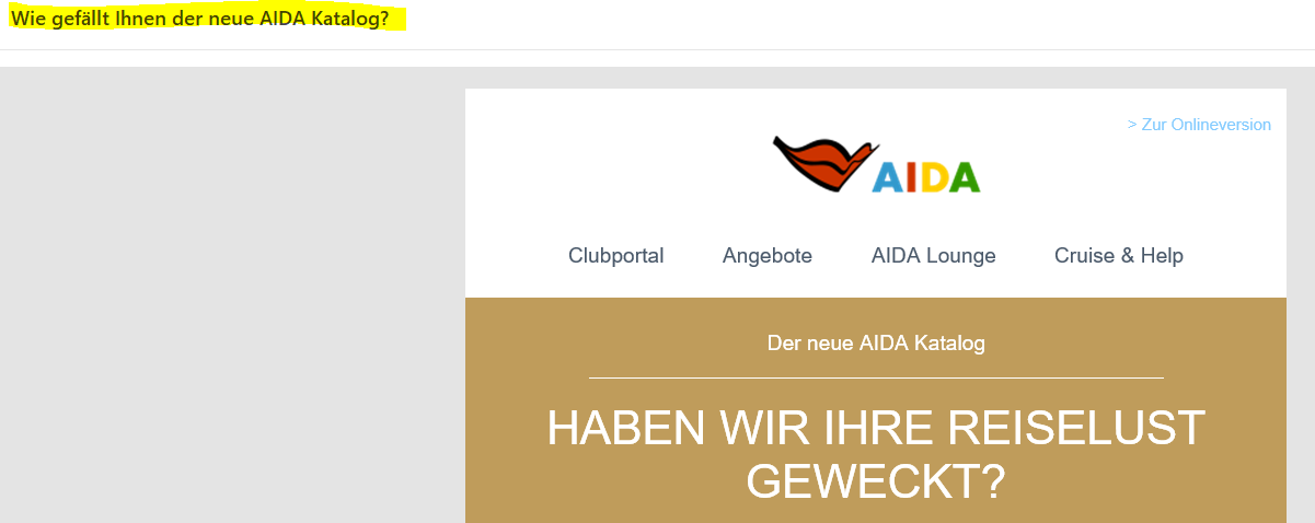 Heute kam mit der Post ein Katalog über AIDAcosma mit Vorstellung des Schiffes und den Reisen ab HH , Lissabon, Weihnachten Sylvester Kanaren und Mittelmeer.