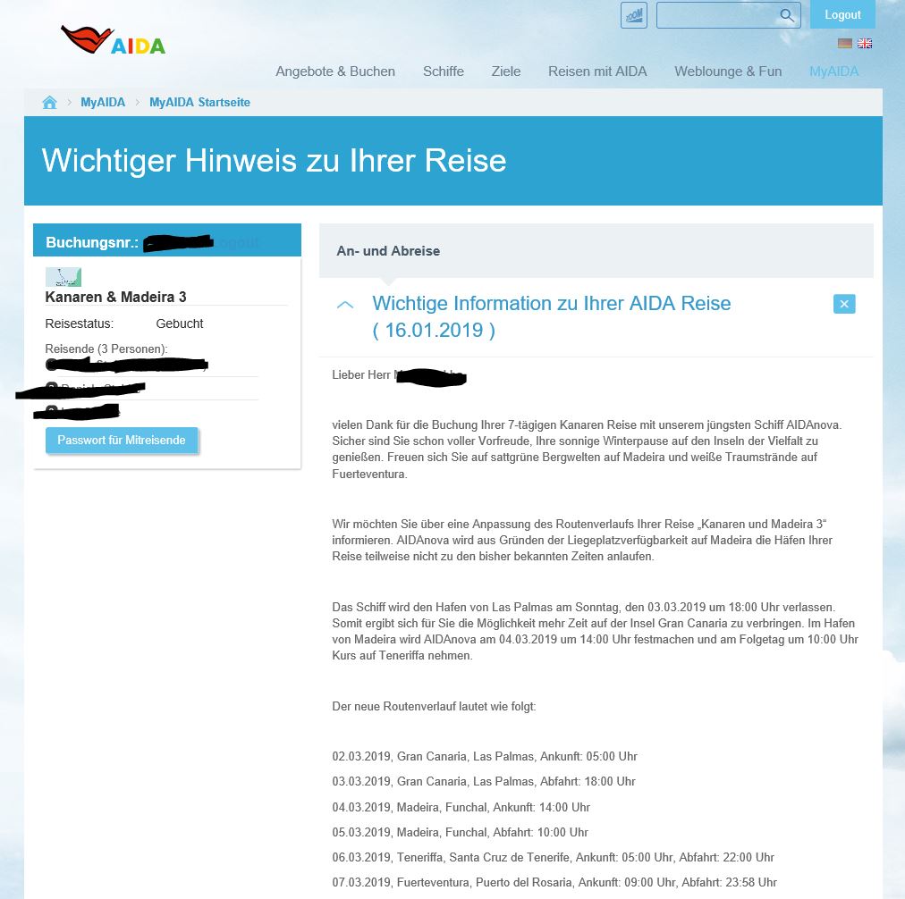 Bis jetzt steht bei uns auch nur der Loro Parque über AIDA auf dem Plan. Und ob die Kinder (8 und 11) das Schiff überhaupt verlassen wollen, ist auch noch fraglich. ![]()