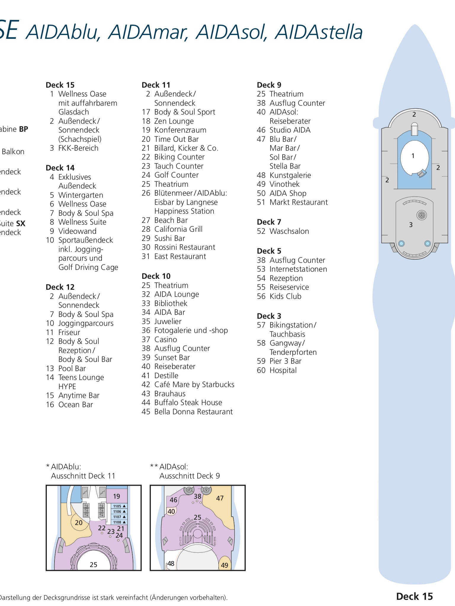 so wie es aussieht, wird es auch auch auf den Sphinxen eine Eisdiele geben. Zumindest auf dem neuen Decksplan der AIDAblu ist diese schon erwähnt. Und anstelle des Cinemares wird es vier zusätzliche Kabinen geben. Auch ist das Cinemare auf den Deckplänen nicht mehr erwähnt...