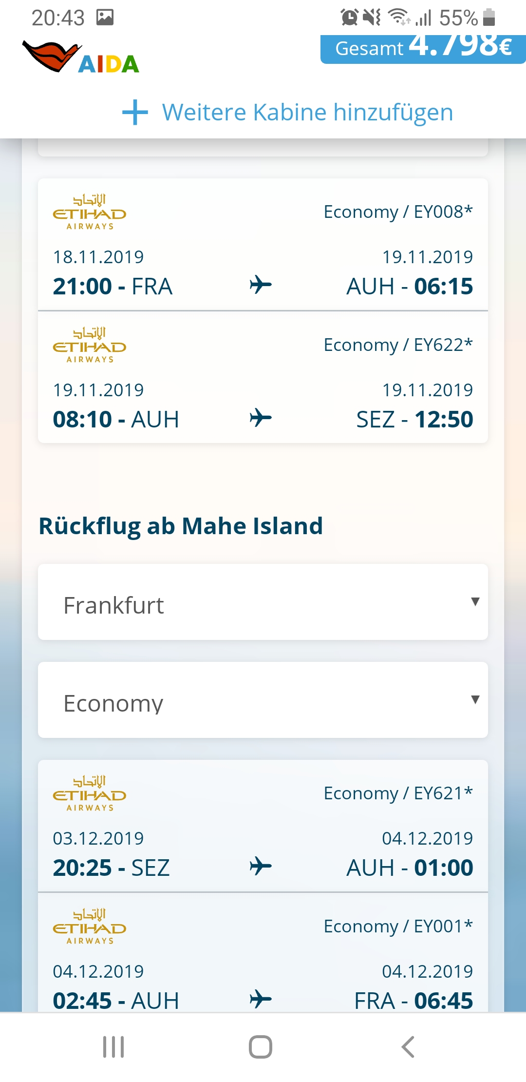 Wir fliegen am 13.1. Richtung Mahe mit Zwischenstopp Dubai(AIDA Flug)