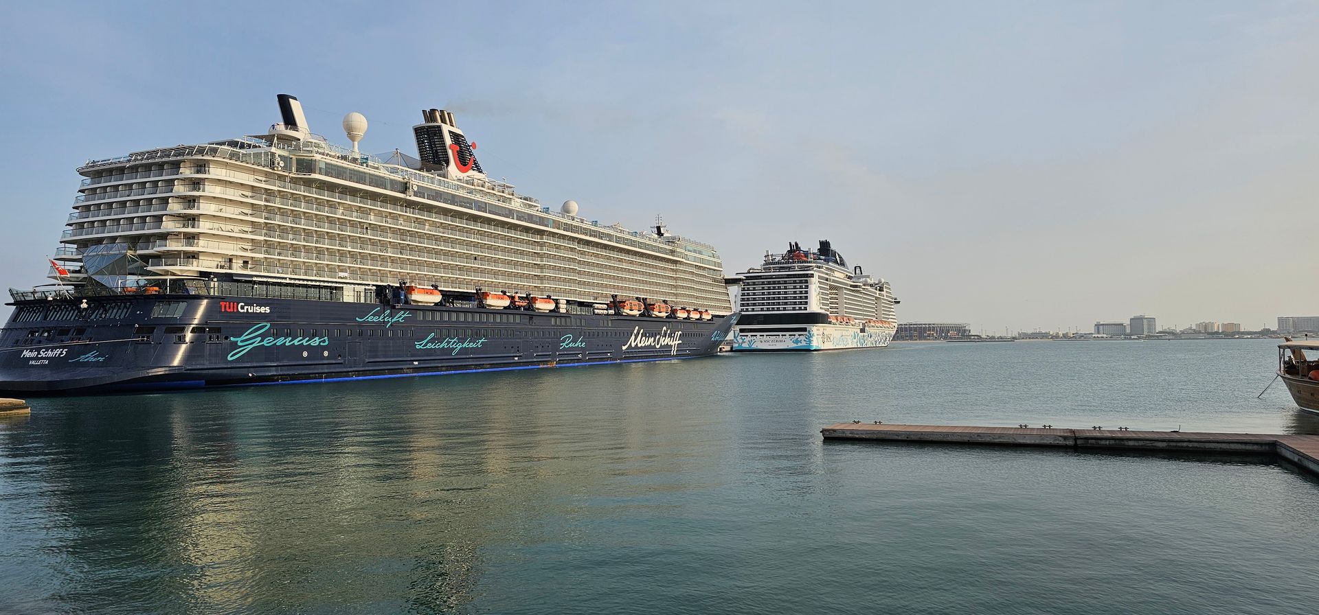 Wir waren mit der Mein Schiff 5 zwei Tage in Doha. Eine tolle Stadt und alle sehr freundlich. Wir hatten am ersten Tag einen deutschsprechenden Reiseführer gebucht. Er hat uns am Terminal abgeholt und uns überall dahin gefahren, was wir hin wollten. Kostenpunkt 65 Euro pro Person. Am zweiten Tag hatten wir einen Guide gebucht, der uns in die Wüste und zum Binnenmeer gefahren hat. Da haben wir eine einstündige Wüstensafari unternommen. Eine unglaubliche Kulisse mit den Sandbergen und dem Binnenmeer. Kostenpunkt 50 Euro pro Person. Beides über Ausflugsportale gebucht.