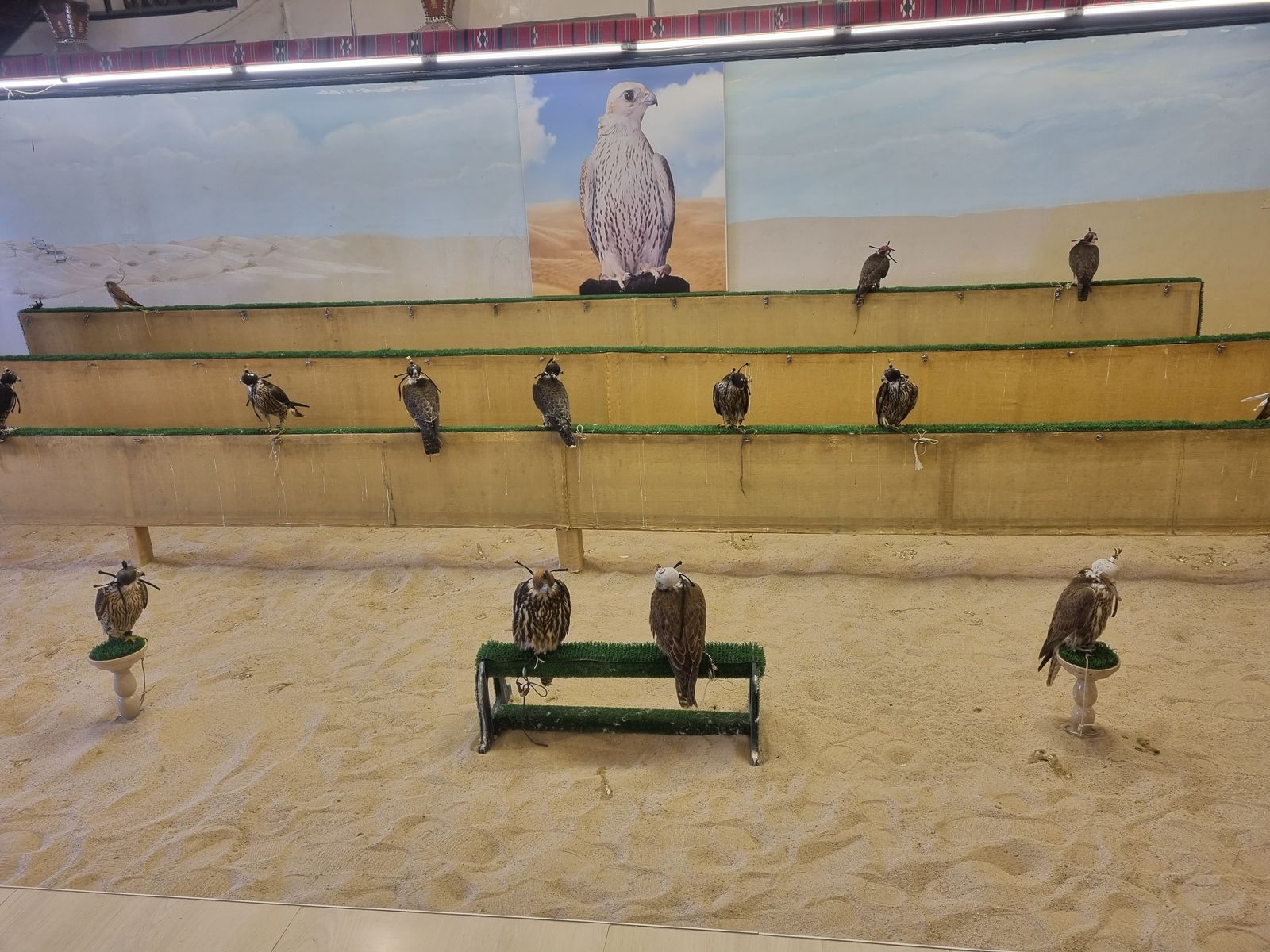 Es gab dort etwa 60 Kamele (eigentlich Dromedare) und unzählige Falken.