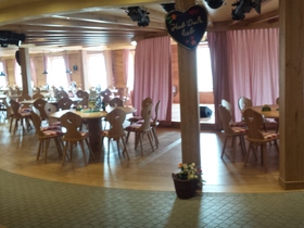 Gibts aber nicht in der Almhütte. Wer zahlt denn für Getränke, die in den anderen Restaurants gratis sind? Oder sind die jetzt inklusive? Fürs Alpenglühn aber vielleicht gut.