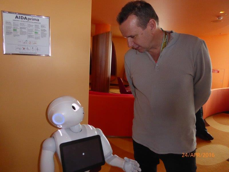 Als ich mit der Prima eine kurze Eröffnungsfahrt machen durfte, war doch so ein süßer Roboter an Bord, der uns begrüßt hat. Mittlerweile ist ja wieder etwas Zeit vergangen, ud die Roboter werden auch schön langsam erwachsen. Sollte ja bald möglich sein, dass sie dann als "Liegenpolizei" eingesetzt werden und Liegen die über 45 Minuten nicht benutzt werden einfach wieder wegräumen.