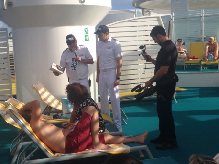 Es gab nun tatsächlich eine Diskussion, da der Liegenbesitzer darauf bestand, dass der Platz an der Reling durch ihn und seine Liege belegt sei!