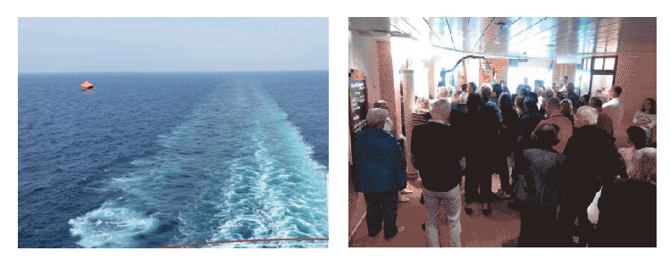 Anbei ein Foto der Rettungsinsel und eines von der wenig erfreuten Menge der Liegenreservierer.