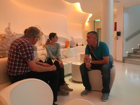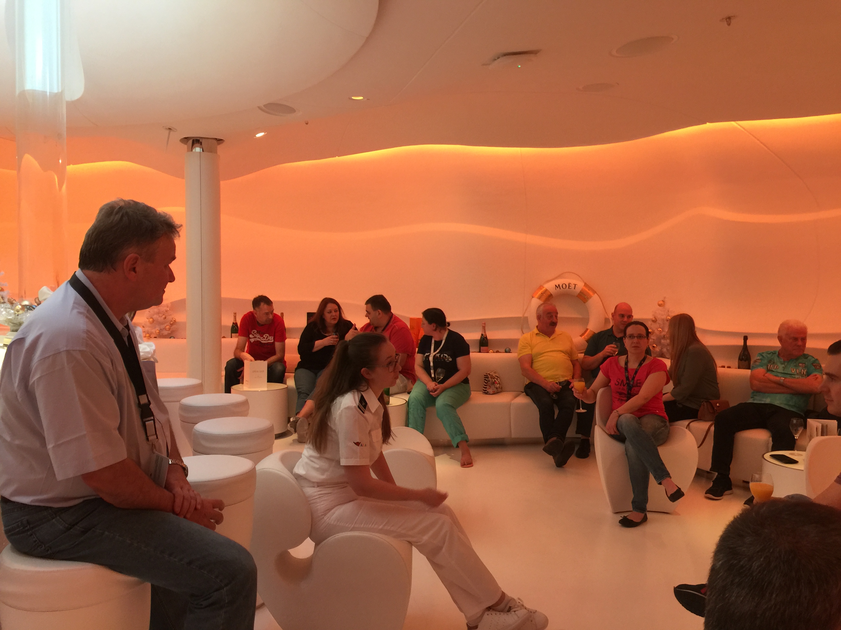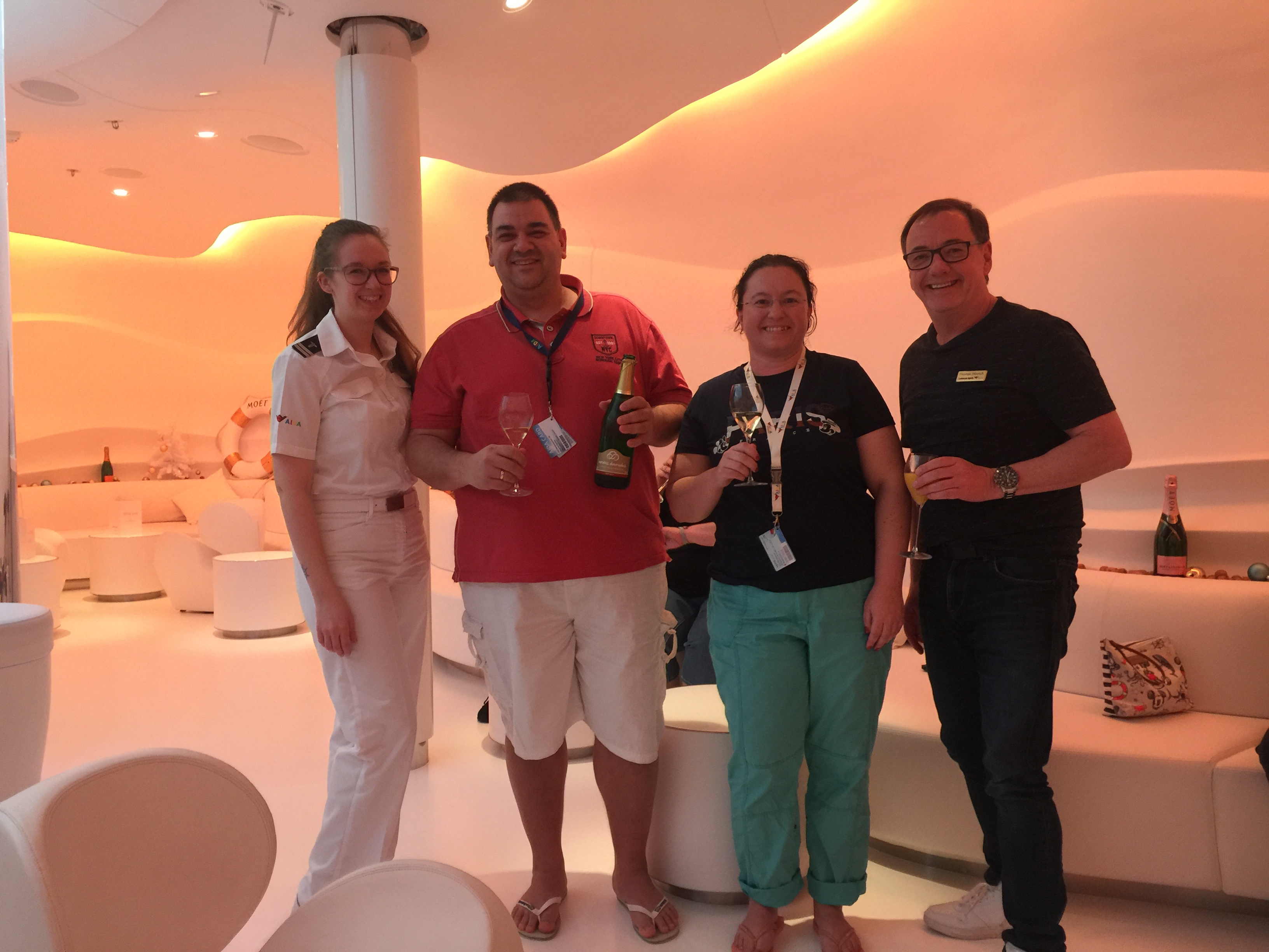 die beiden haben uns einen super Einstieg in das Treffen in der Spray Bar ermöglicht und wir konnten ein bisschen mehr über Aidaprima und das Leben der Crew erfahren.