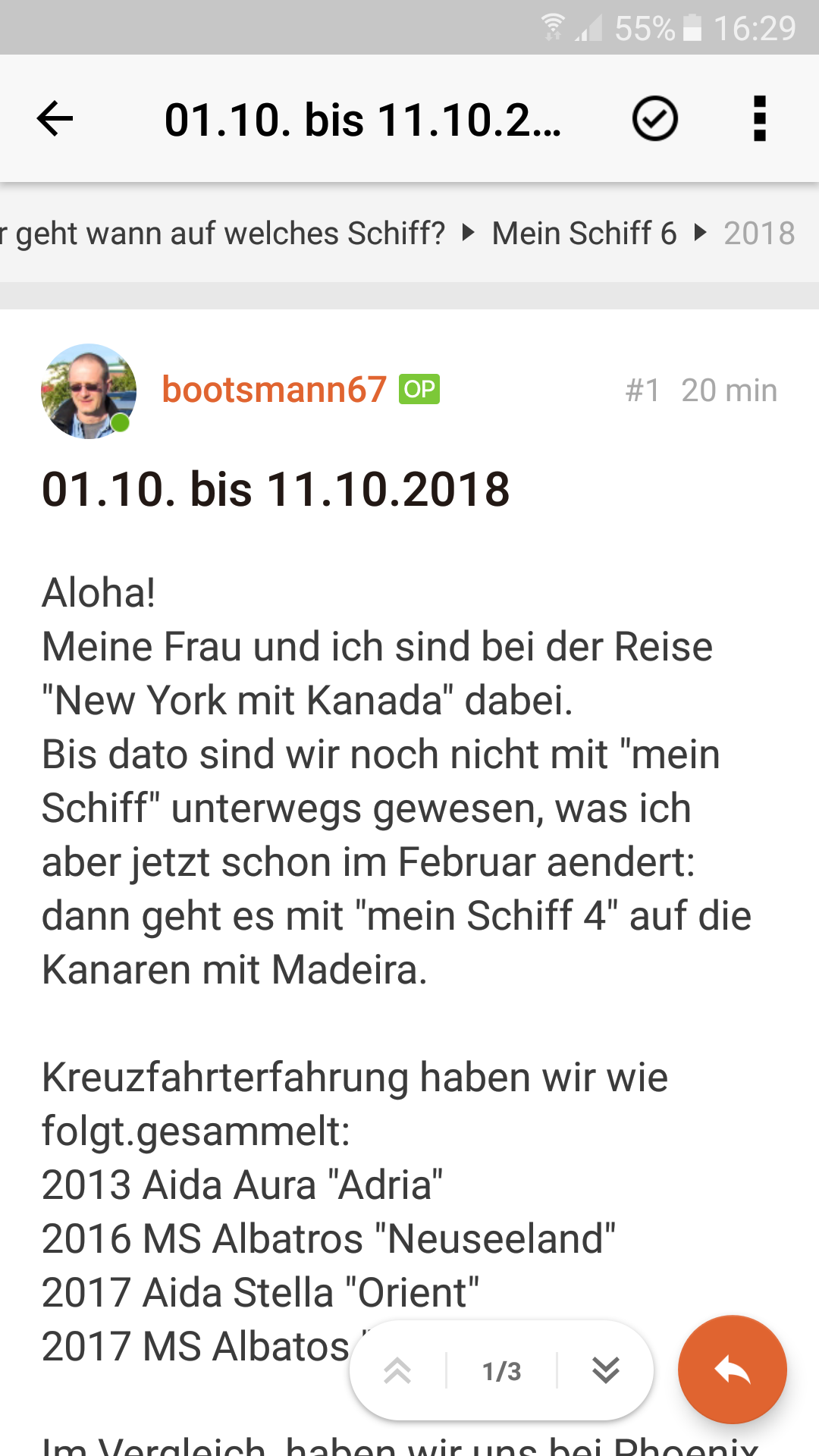 Meine Frau und ich sind bei der Reise "New York mit Kanada" mit "mein Schiff 6" dabei.