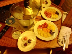 Die Beigaben des vorab gebuchten Abreisepaketes standen auch schon bereit.