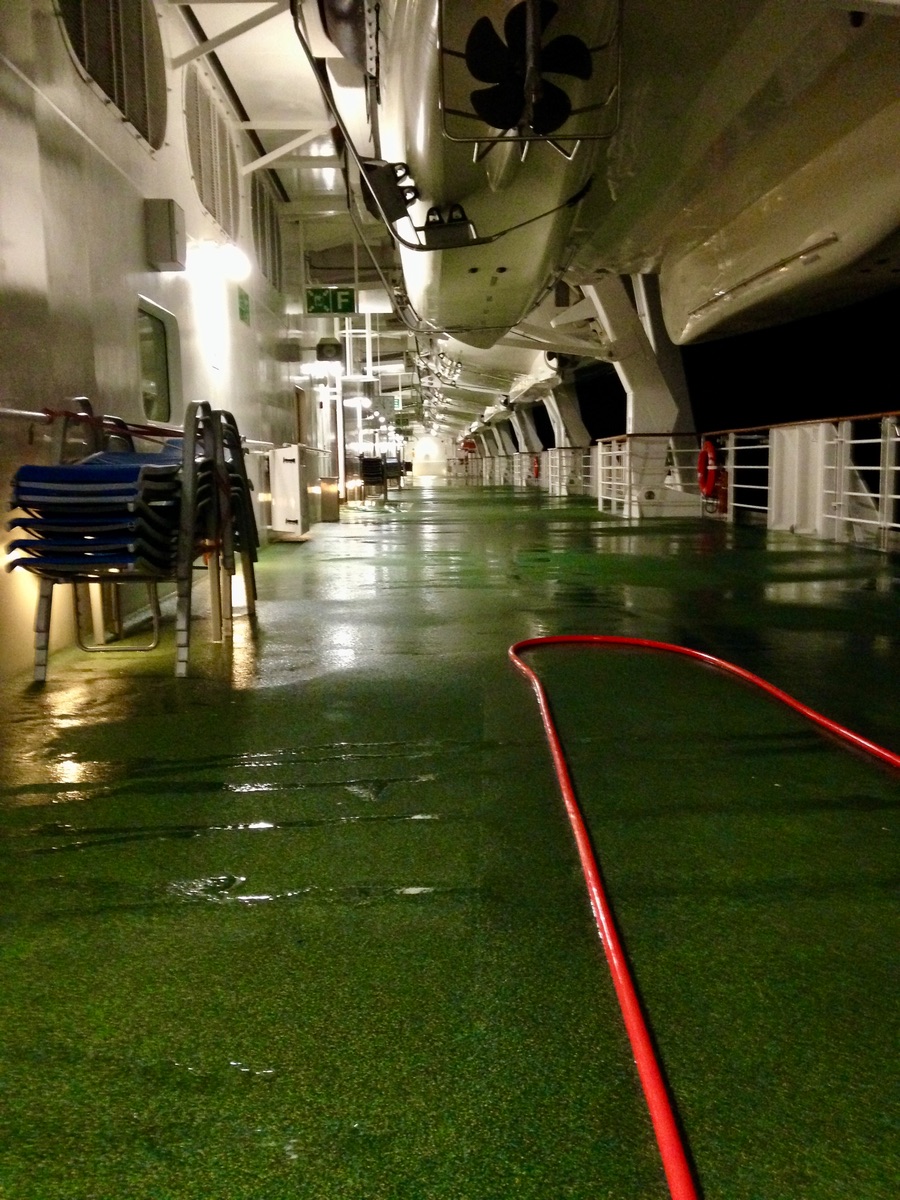 Gegen 23:45 noch eine letzte Runde auf Deck 5 und irgendwann um 01:30 war ich dann im Bett.