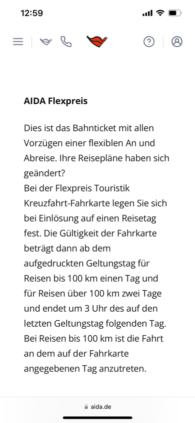 Für meine nächste Kreuzfahrt habe ich An- und Abreise mit Rail&Cruise über AIDA gebucht (Sparpreis).