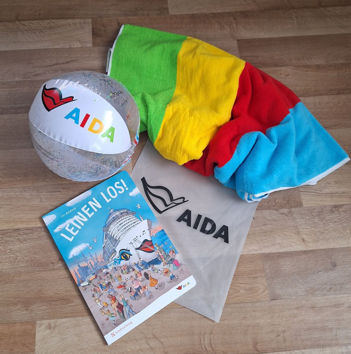 Heute kam bei meinem Sohn unverhofft ein Päckchen von AIDA an (1 großes Badetuch, ein Wasserball und das AIDA-Wimmelbuch) 😁