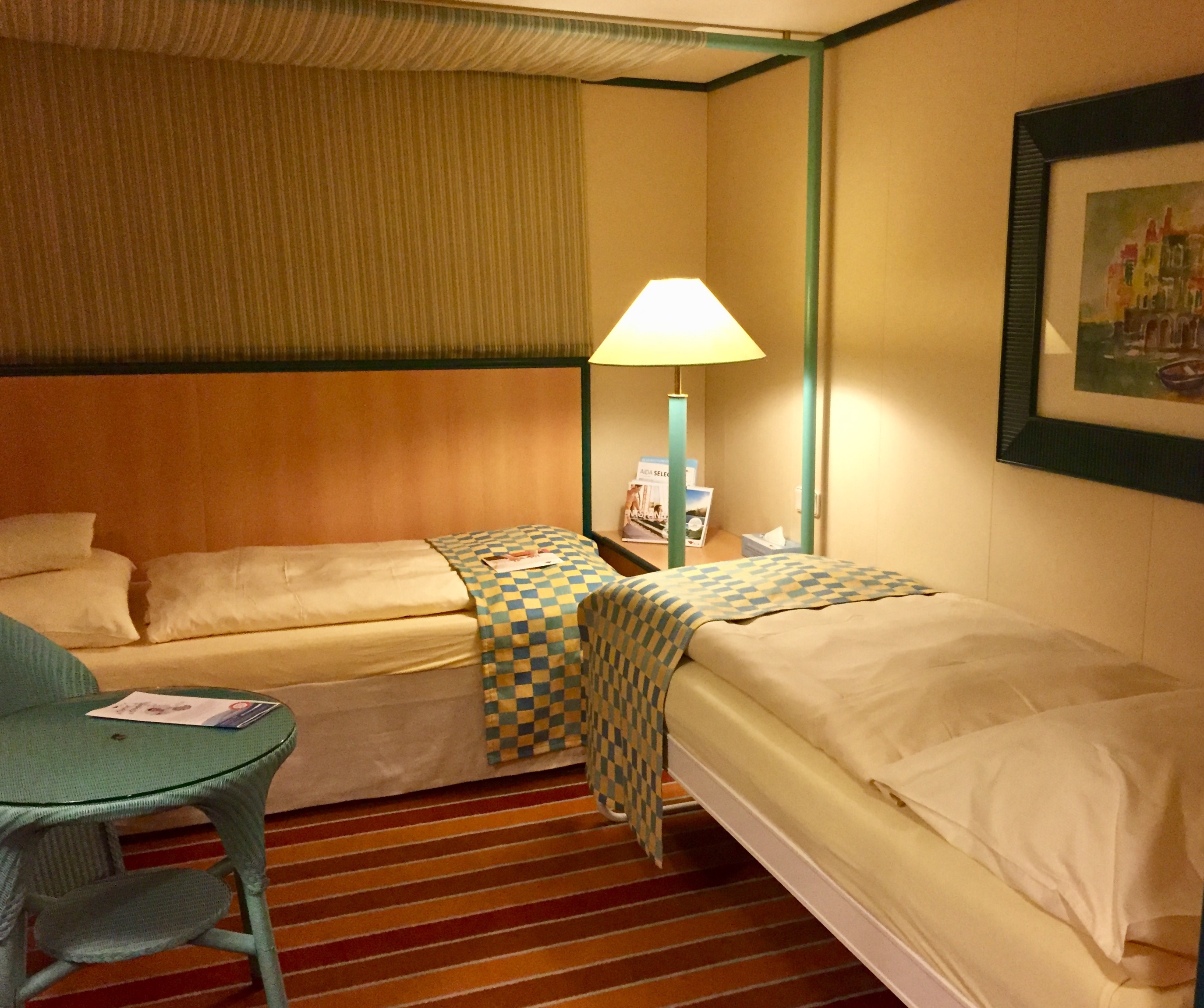 Auf der 1. Weltreise mit der Cara war diese im hinteren Drittel auf der Steuerbordseite gelegene Innenkabine für 6,5 Wochen mein Zuhause. Ich hatte sie in Premium ausgewählt, weil die Nachbarkabine 4176 bereits relativ gut bewertet worden war.