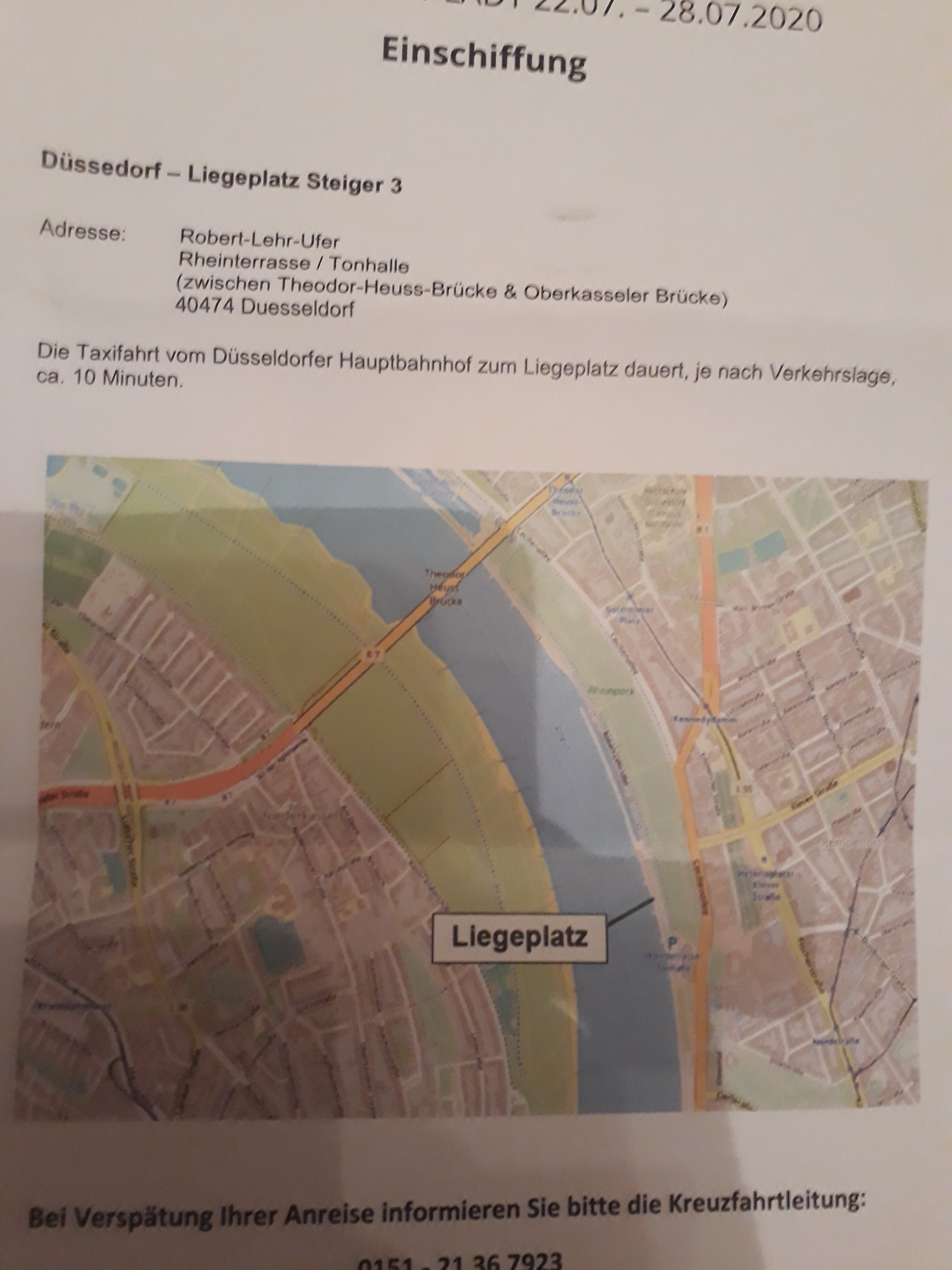 wir sind im Juli (übrigens die Reise mit dem Brücken Unfall) bereits mit der MS Lady Diletta gefahren, Abfahrt ist am Liegeplatz Steiger 3, Robert-Lehr-Ufer, Düsseldorf.