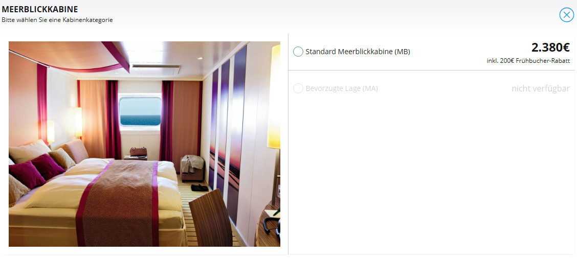 Wahnsinnig guter Preis für diese Route. Wenig Seetage und lauter Topdestinationen. Leider keinen Urlaub mehr. Ich wundere mich, dass es sowohl Innen, Außen und Balkon im Vario gibt. Da muss ja wirklich noch einiges frei sein?!