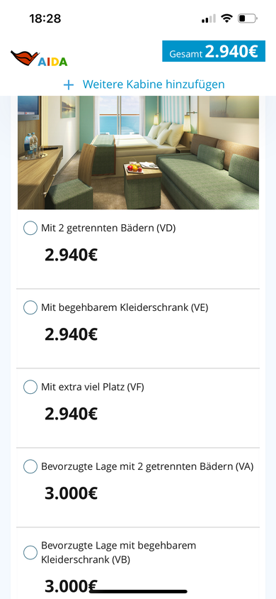 Im Premium sind die günstigsten Kabinen die CA, MB wäre schon 2.200 Euro. Bei Vario kann man ja alles bekommen (aber neuerdings auch CA). So unlogisch finde ich die Preisgestaltung nicht.