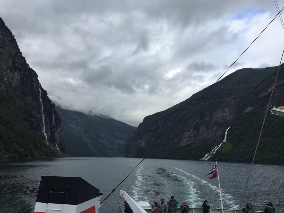 Vom Dalsnibba hatten wir auch nur kurz zwischen den Wolken den Geirangerfjord mit den zwei Kreuzfahrtschiffen sehen können.