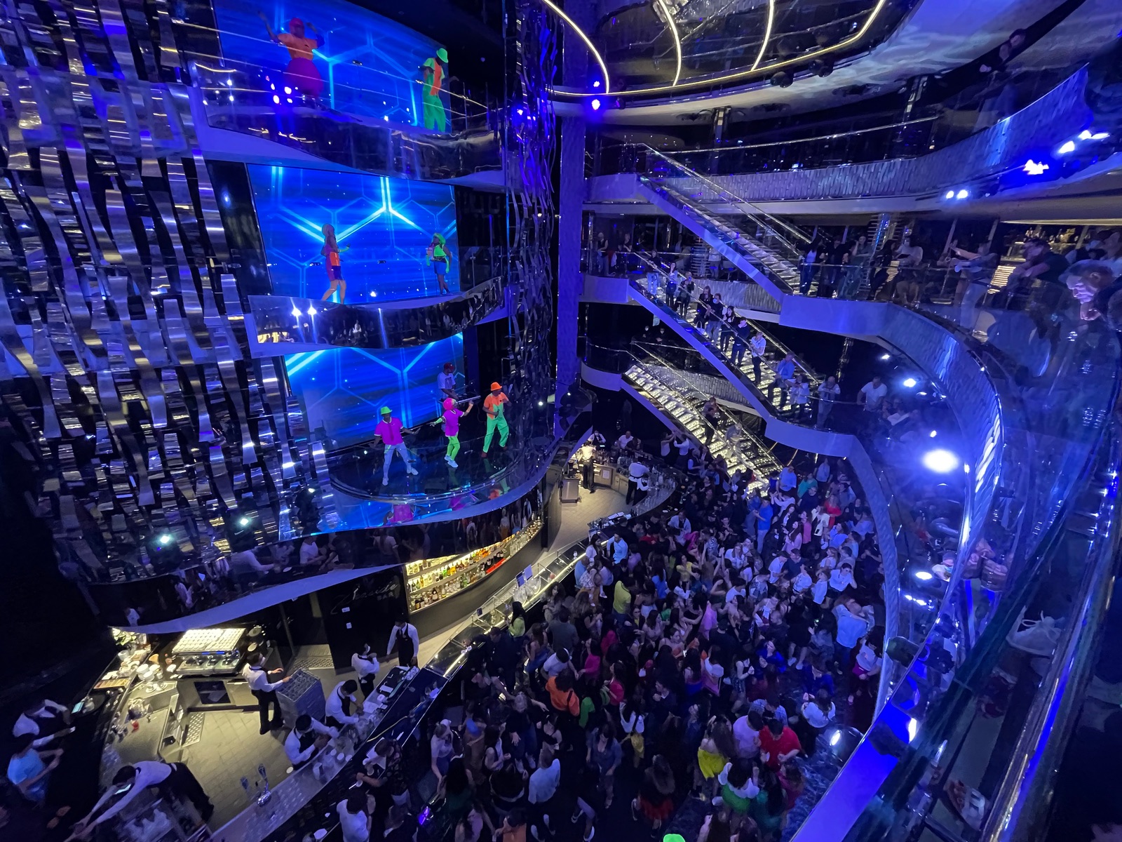 Ich hatte nur eine Fahrt auf einem Schiff dieser Klasse (eben auf der Seaside), aber die Party über mehrere Decks, das was schon