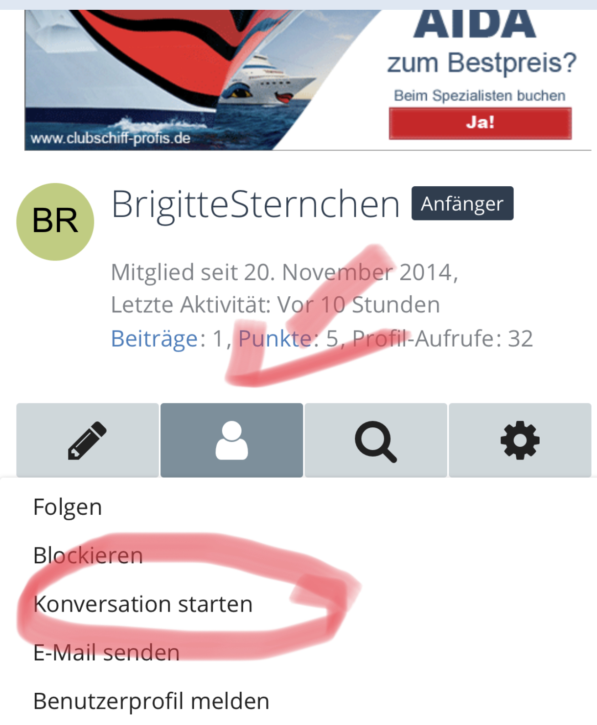 Kann mir jemand sagen wie das mit Konversation geht? Ist das sowas wie private Nachricht, wo muss ich da klicken.