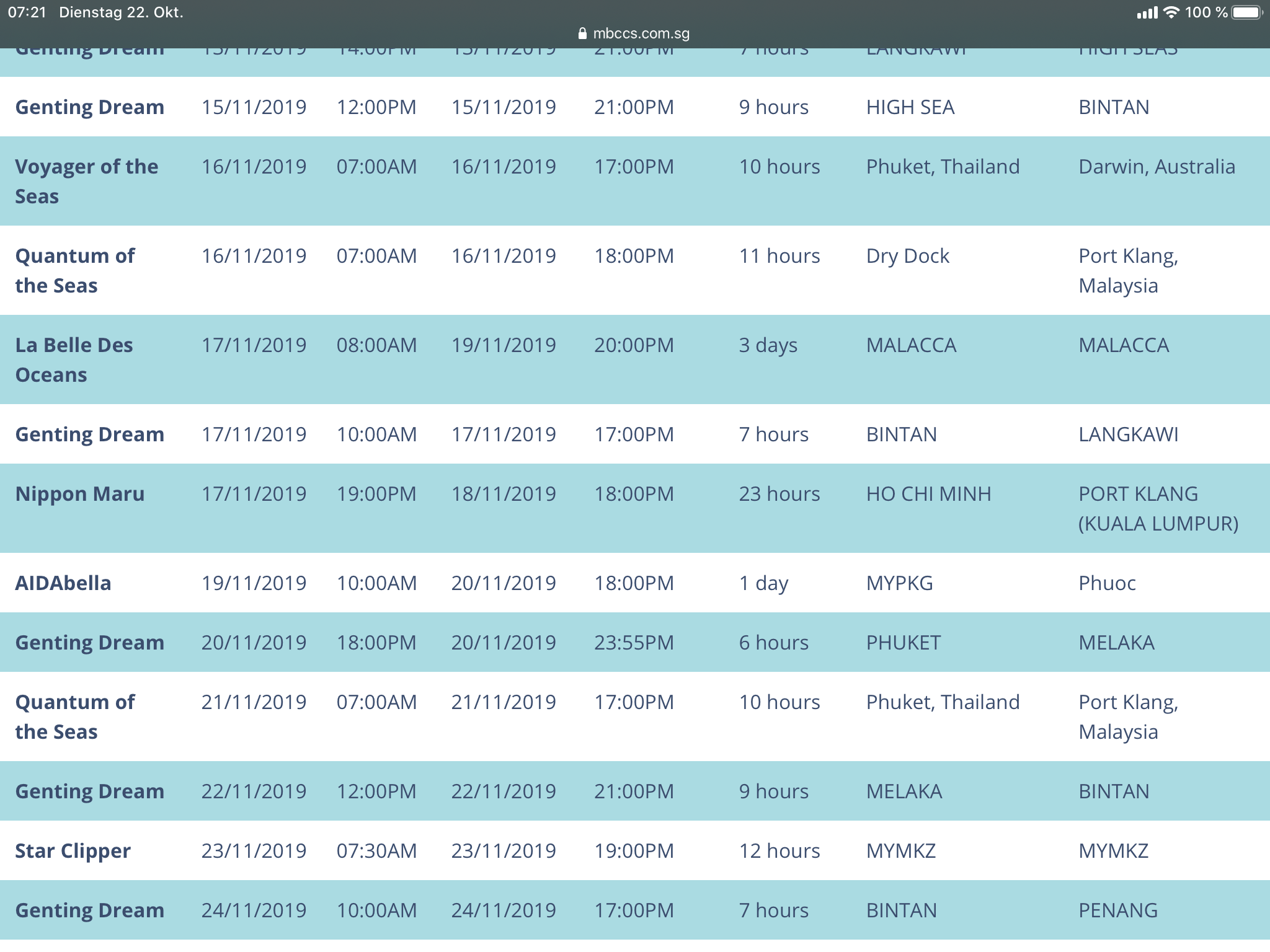 Die bella ist aber weder auf der offiziellen Webseite der Marina Bay, noch auf der des Singapore Cruise Center für unseren Termin eingetragen...