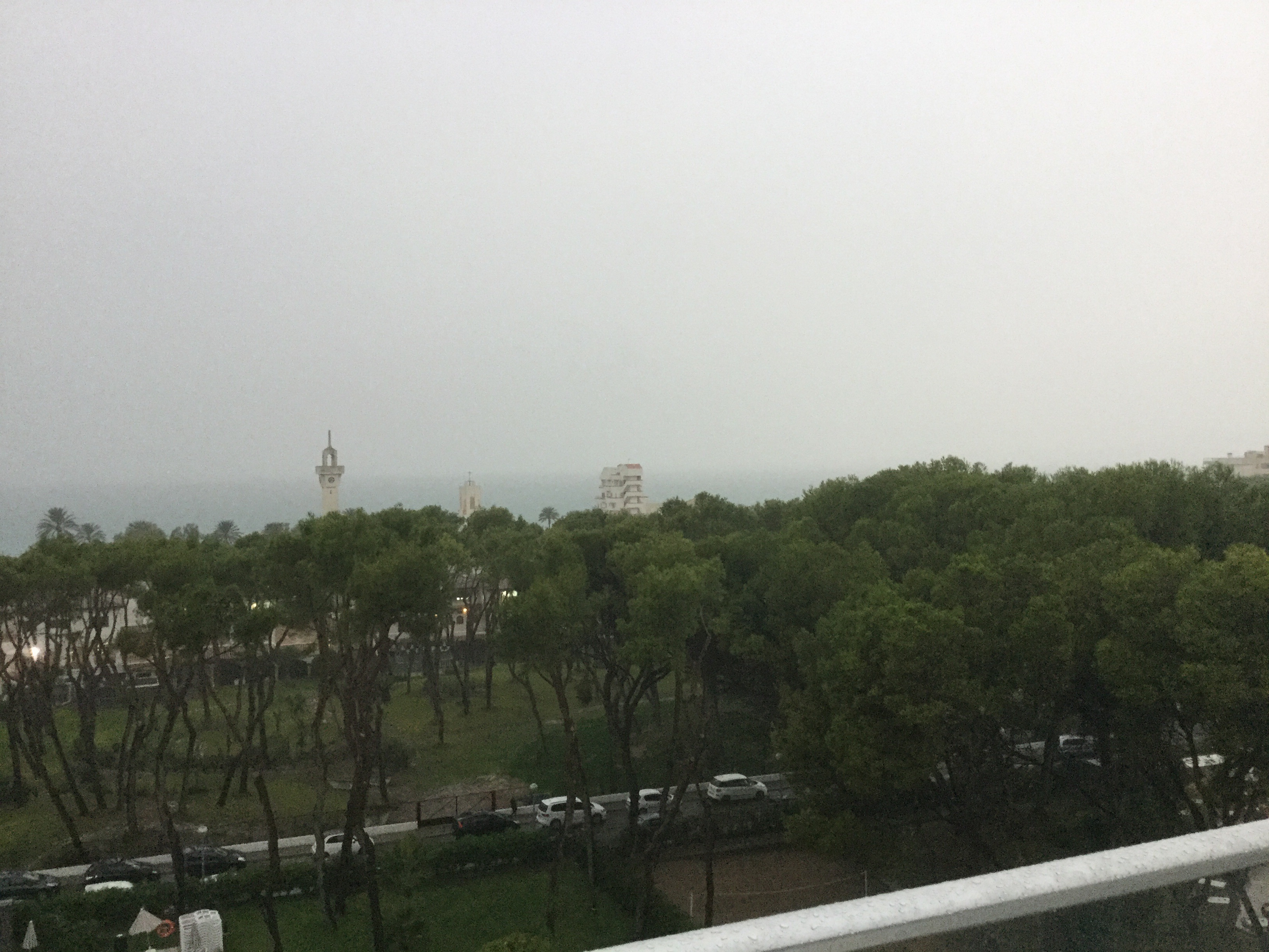 Es schüttet wie verrückt. Unser Flugzeug kam aus Barcelona,der Kapitän entschuldigte sich für die Verspätung wegen starkem Gewitter.