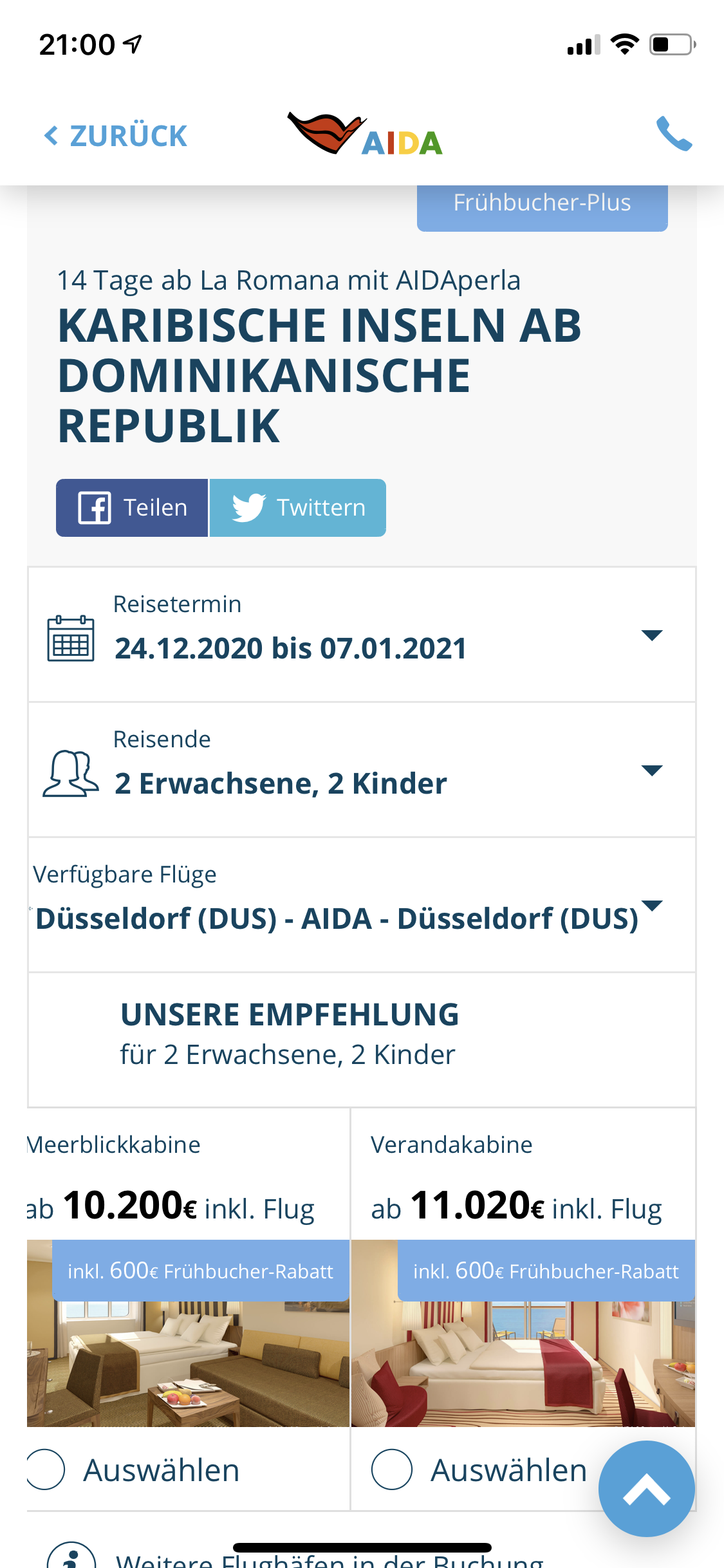 Falls jemand spontan AIDA buchen will – hier gibt’s sogar einige Last-Minute-Optionen.