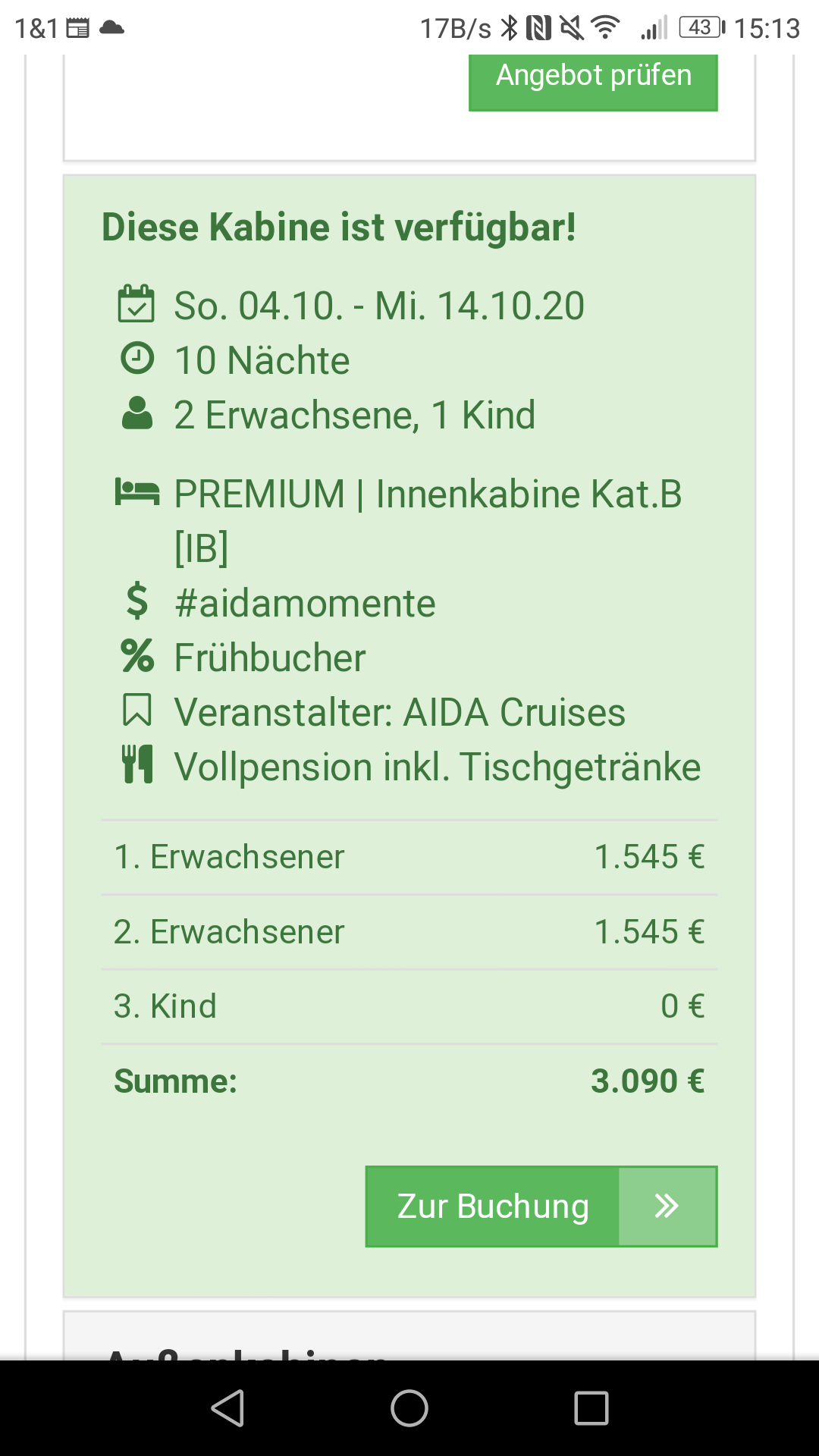 Ein passendes Beispiel wäre doch besser 249,-€ für 7 Tage innen ohne Anreise auf der der Sol aktuell.