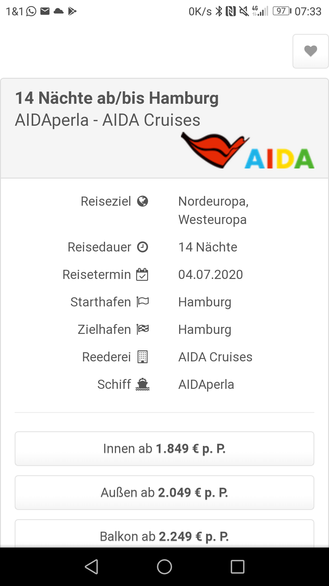 Manchmal bietet AIDA auch gar keine Pauschal-Angebote, dafür dann viele Reisen im Vario.