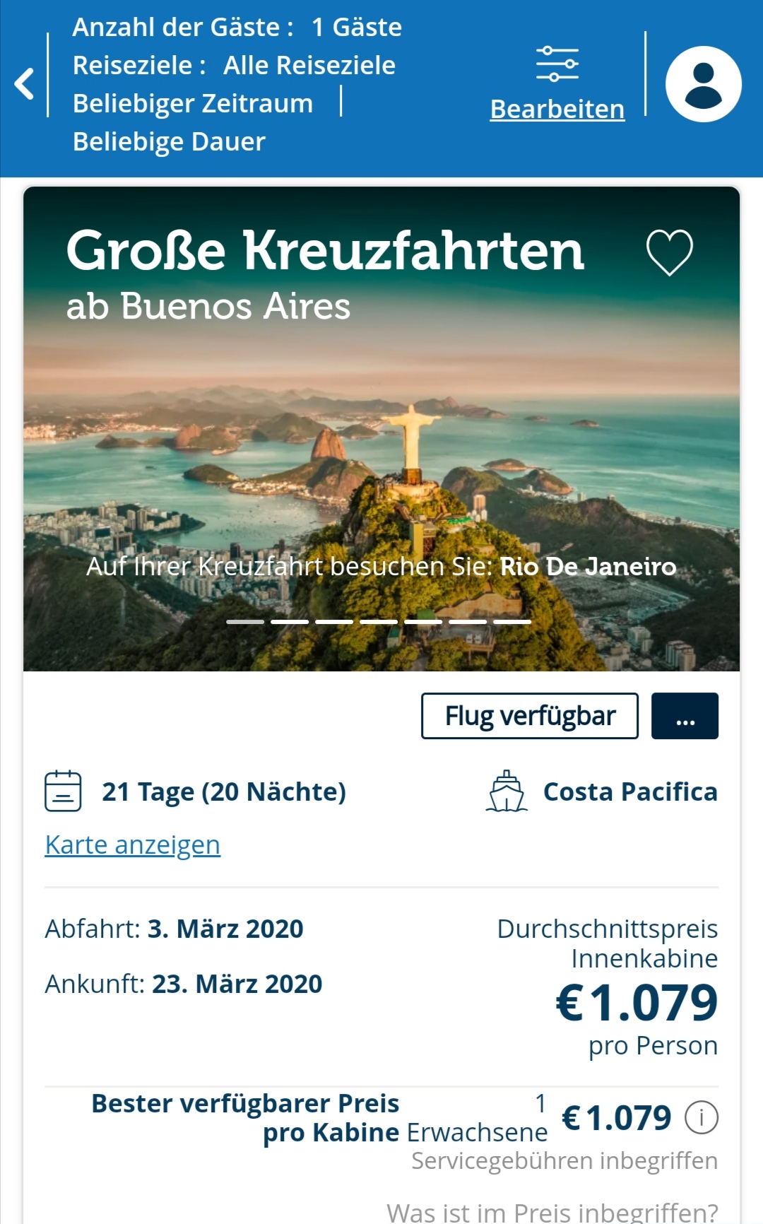 Nein, ich meine den gesamten Kreuzfahrtpreis, ohne An- und Abreise. Das gibt es öfters, dass man als Alleinreisende gar nicht buchen kann, oder nur Premium während die Reise schon im Vario angeboten wird.